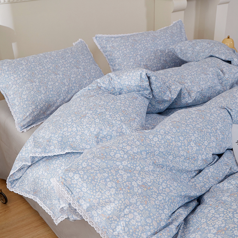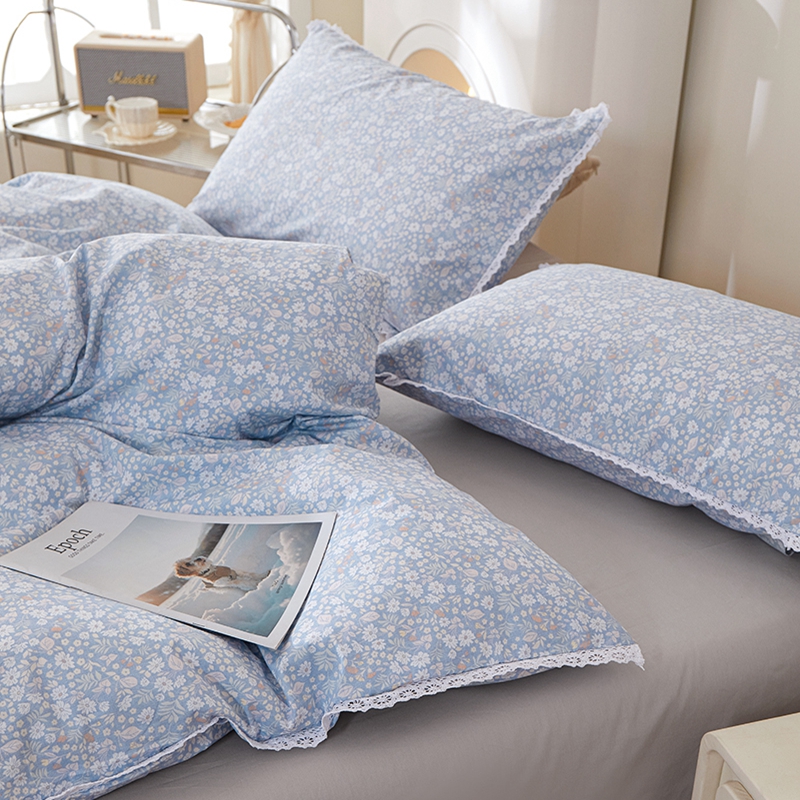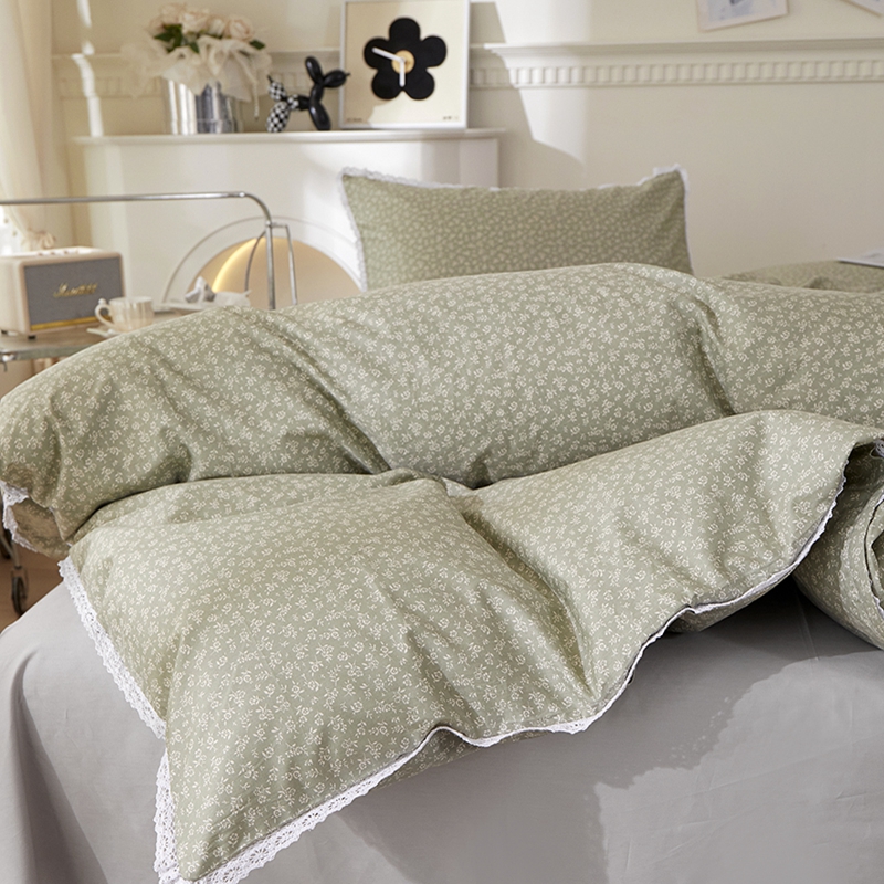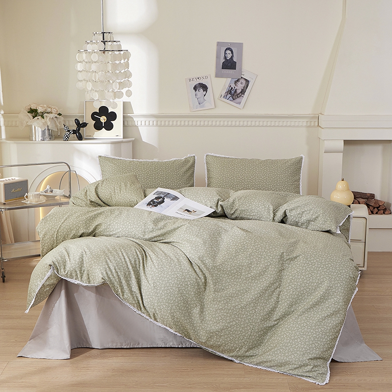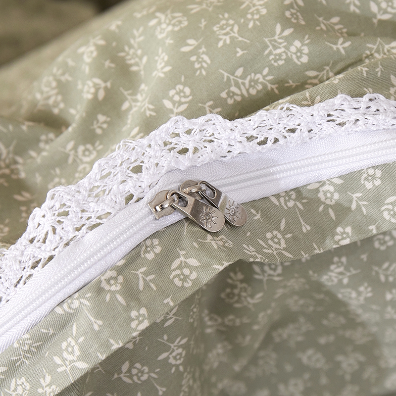 当前位置: 91家纺网 > 商品网购 > 床品套件 > 四件套 > 全棉普通四件套 > 一米阳光 2026年春夏新款小清新白色小花边全棉纯棉四件套 古堡花园~灰绿