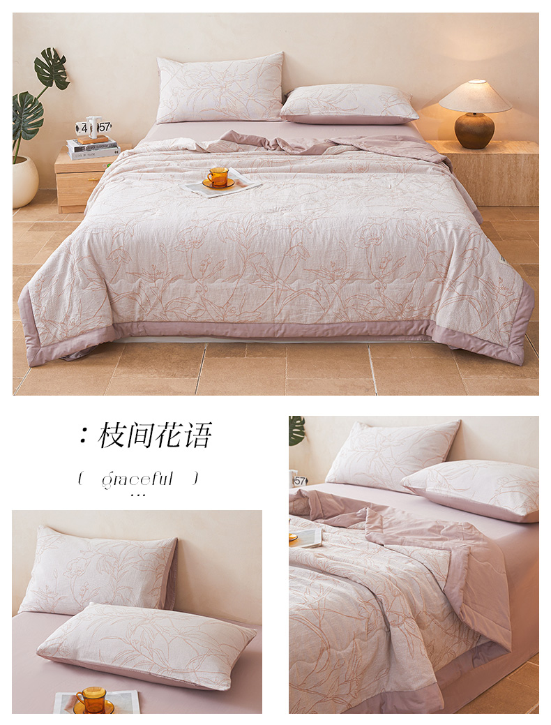 • 91家纺网 家纺一手货源 找家纺 (总)乐家毛巾被(工厂自产自销) 2026新款全棉色织三层提花夏季大豆纤维被,缠枝,繁花若素,方格蝴蝶,粉黛玫瑰,粉雾,海棠,花间浅梦,花枝,锦蓝尚华,惊鸿,蓝韵,澜光盛华,菱韵,绿意丛生,迷宫,迷雾,欧花,绮华,青枝绿叶,轻奢R,清花柔居,柔枝,疏影,素影繁花,小雏菊,胭粉,叶影清风,悠然,枝繁叶茂,枝间花语,竹影