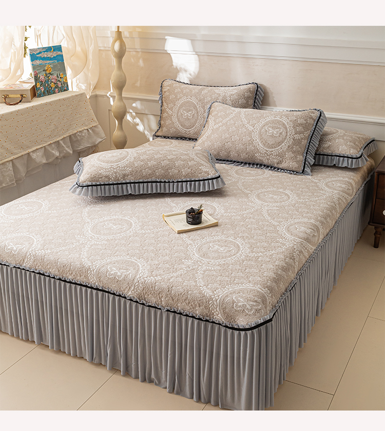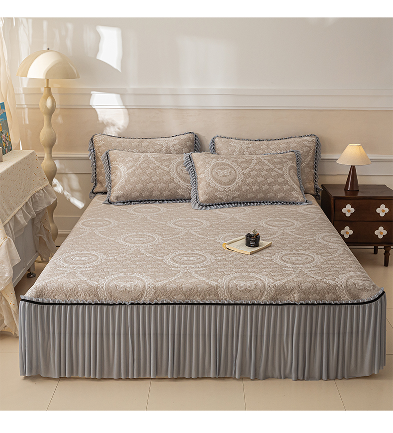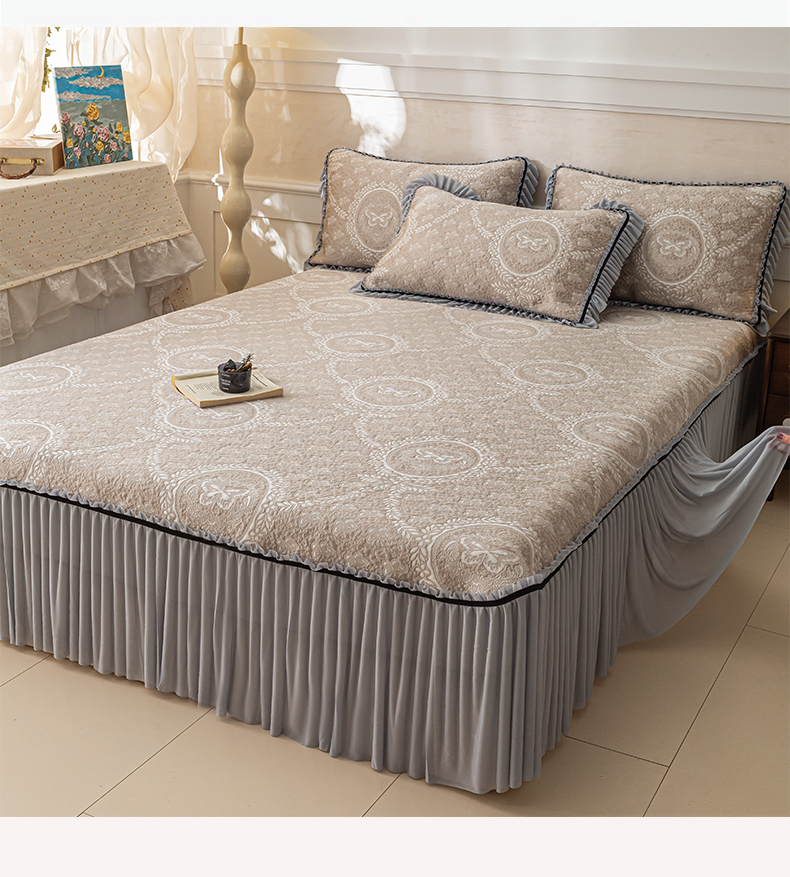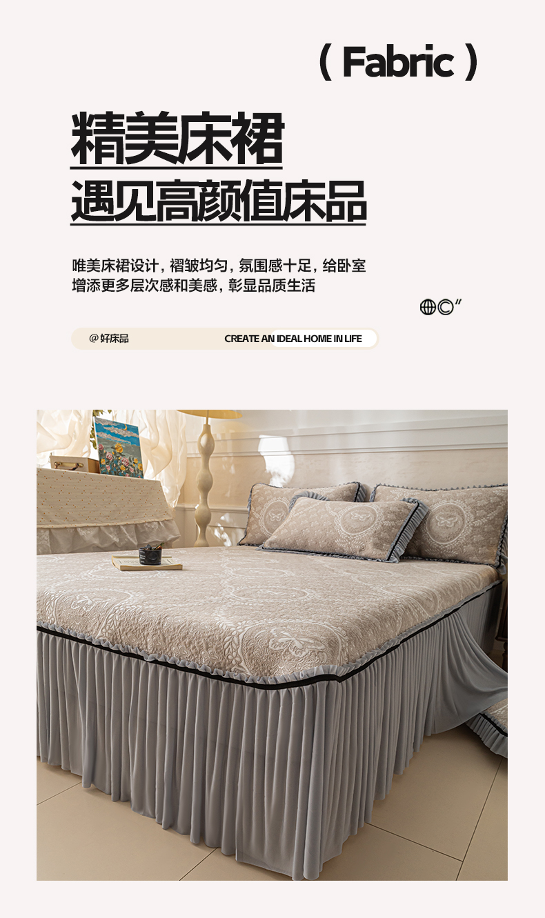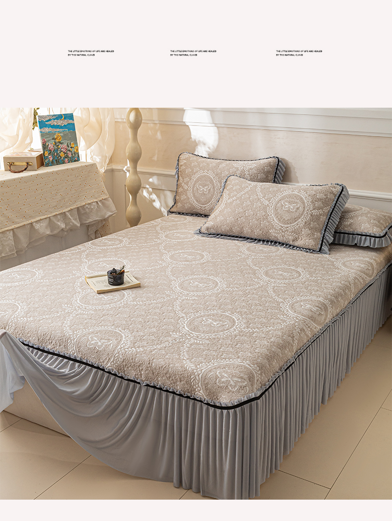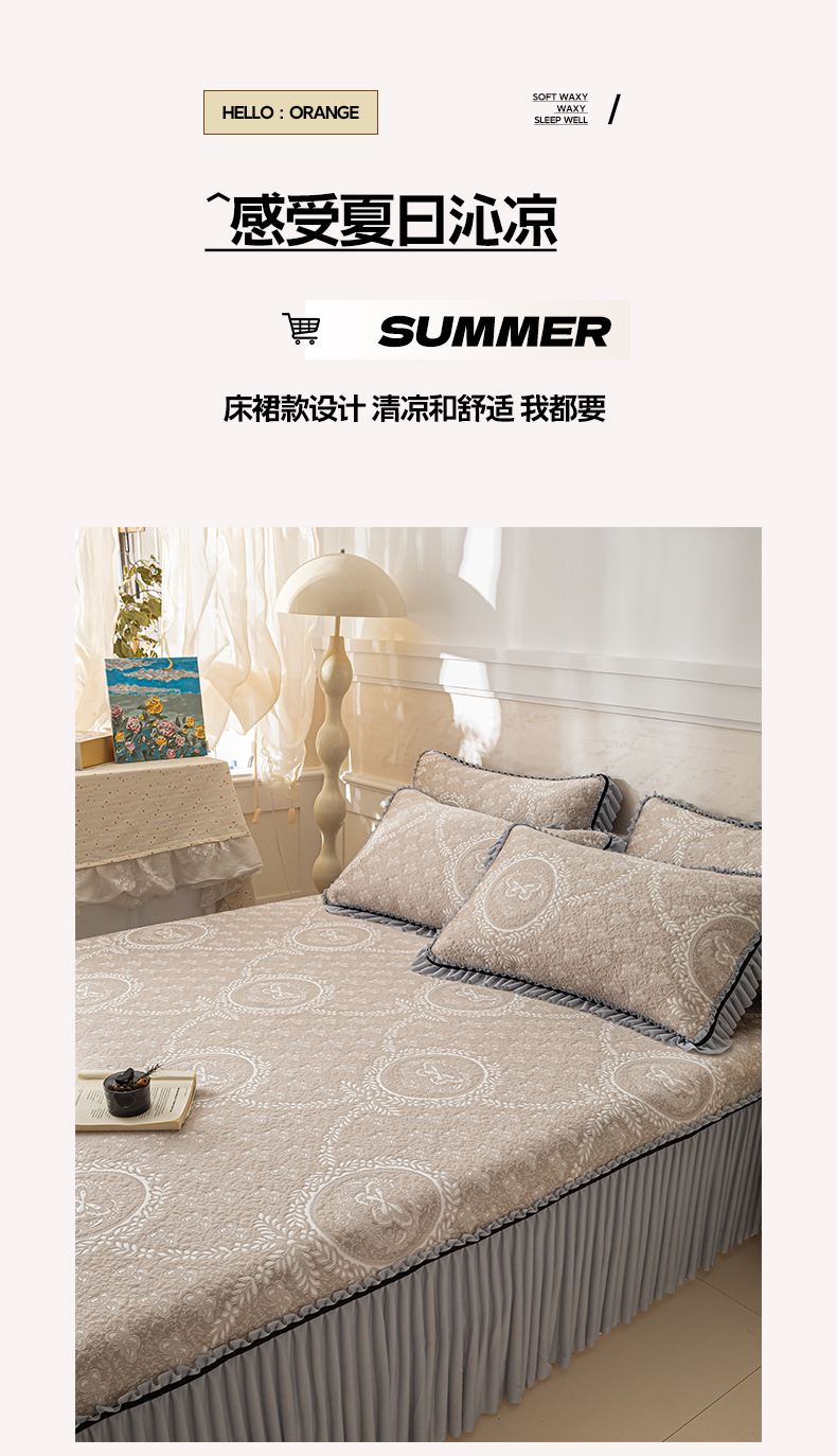 商品名称:雅居纺家纺 2026新款花间蝶梦款凉感床裙凉席席子 花间蝶梦-卡其