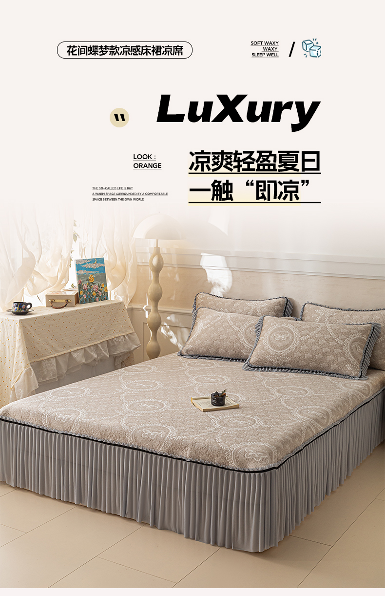 (总)雅居纺家纺 2026新款花间蝶梦款凉感床裙凉席席子,花间蝶梦-粉,花间蝶梦-灰,花间蝶梦-卡其,花间蝶梦-蓝,花间蝶梦-绿