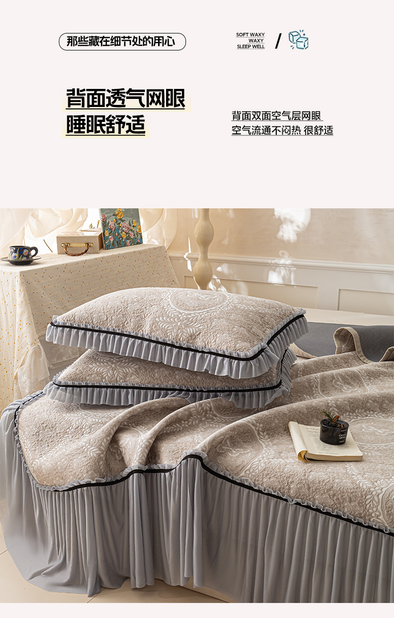 (总)雅居纺家纺 2022新款华夫格花边款四件套,梦幻蓝,橙色,纯白,米咖,浅粉,浅灰,优雅灰