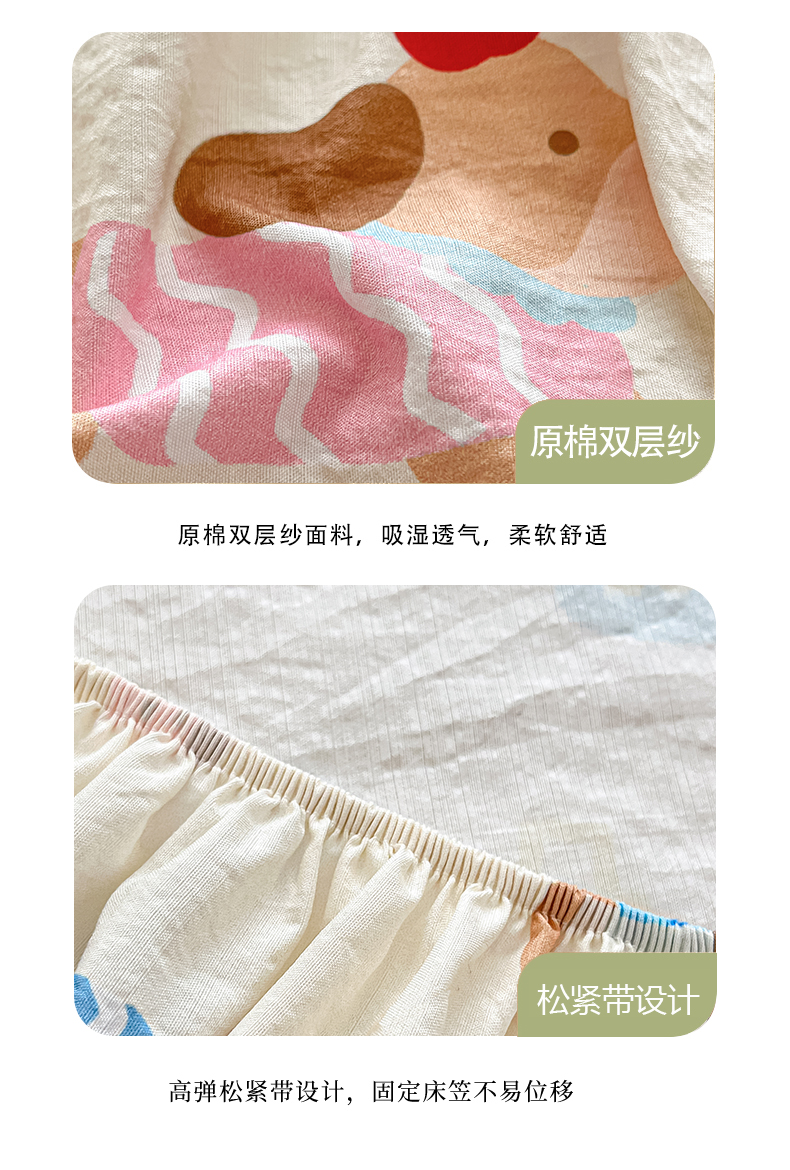(总)川悦生活 2026新款云感双层纱木棉四件套,嘟嘟花园,花田乐园,花都小狗,腊肠庄园,花艺喵喵,腊肠甜心,可乐腊肠,海盐小咪,奶油糕糕喵,奶油可盐,汽水小咪,恰星星,巧克力乐园,数星星,糖豆小旺,甜梦心愿,西斯花圃,香芋甜梦,小猫庄园,星星西高地,杏仁小星星