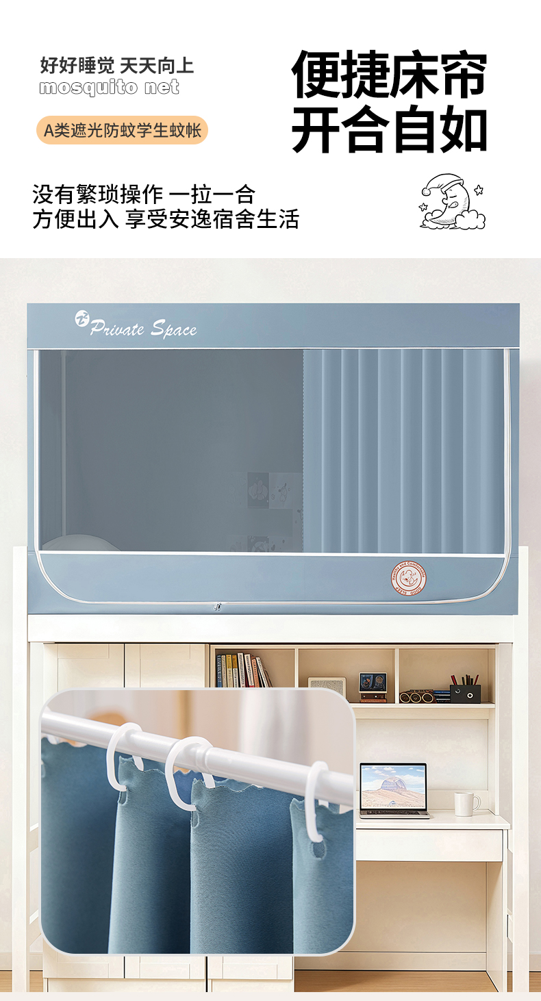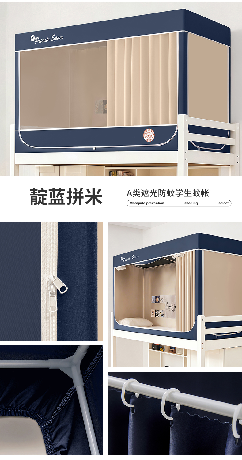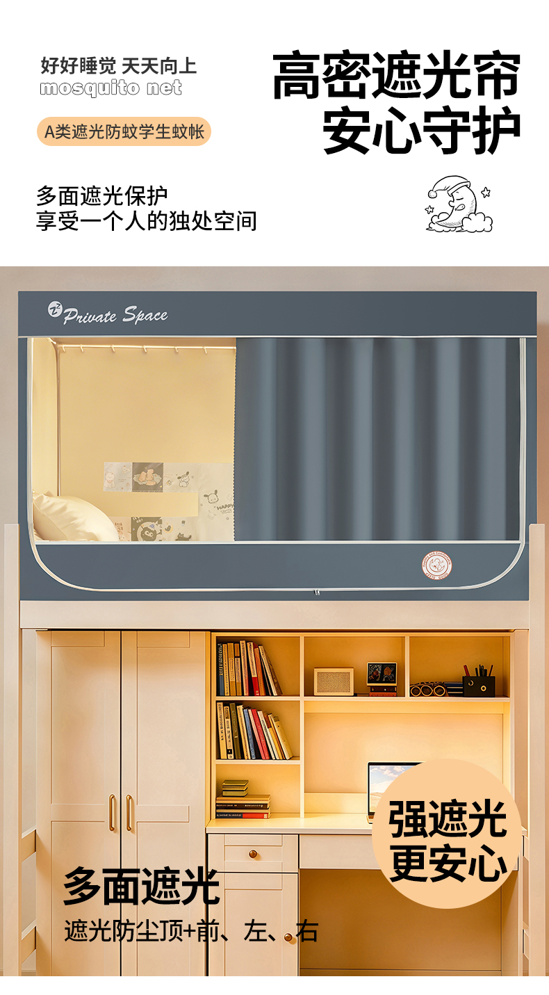 商品名称:(总)壹和 2026新款纯物理无涂层无覆膜款遮光防蚊学生坐床蚊帐(场景二)