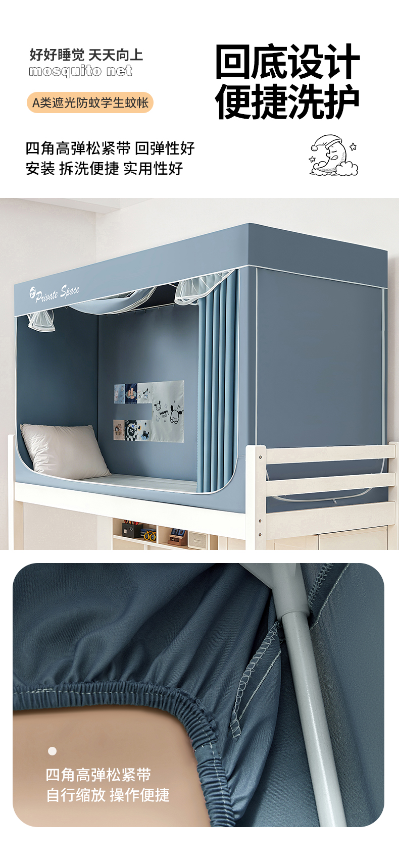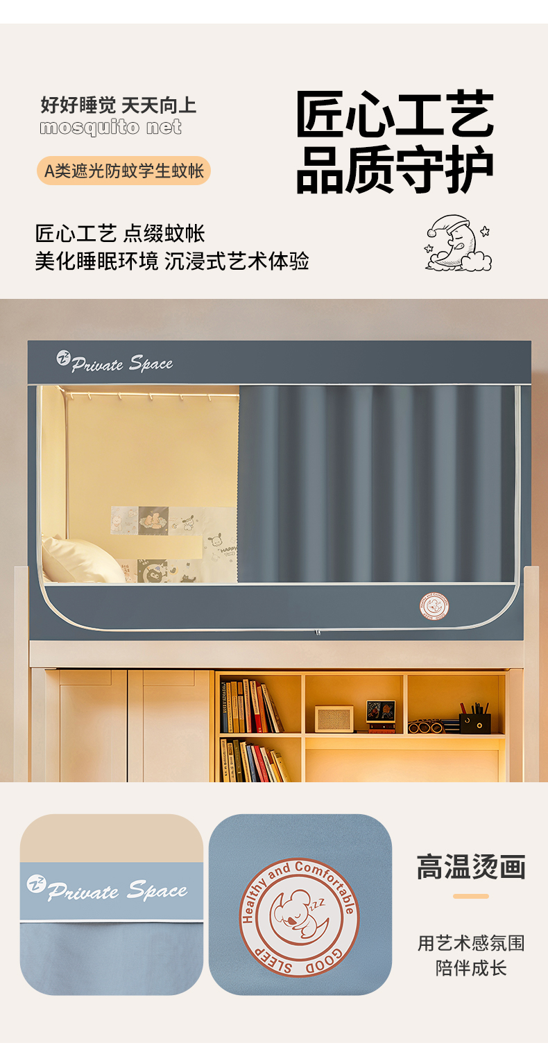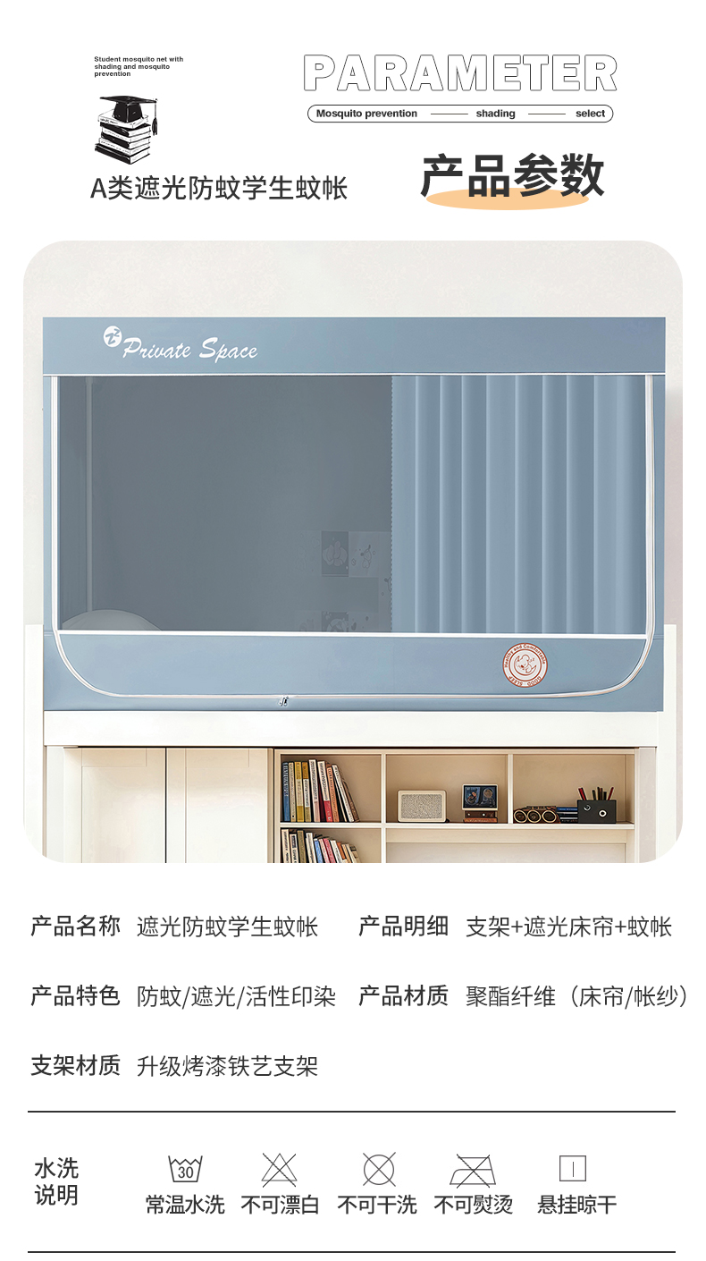 商品名称:(总)壹和 2026新款纯物理无涂层无覆膜款遮光防蚊学生坐床蚊帐(场景二)