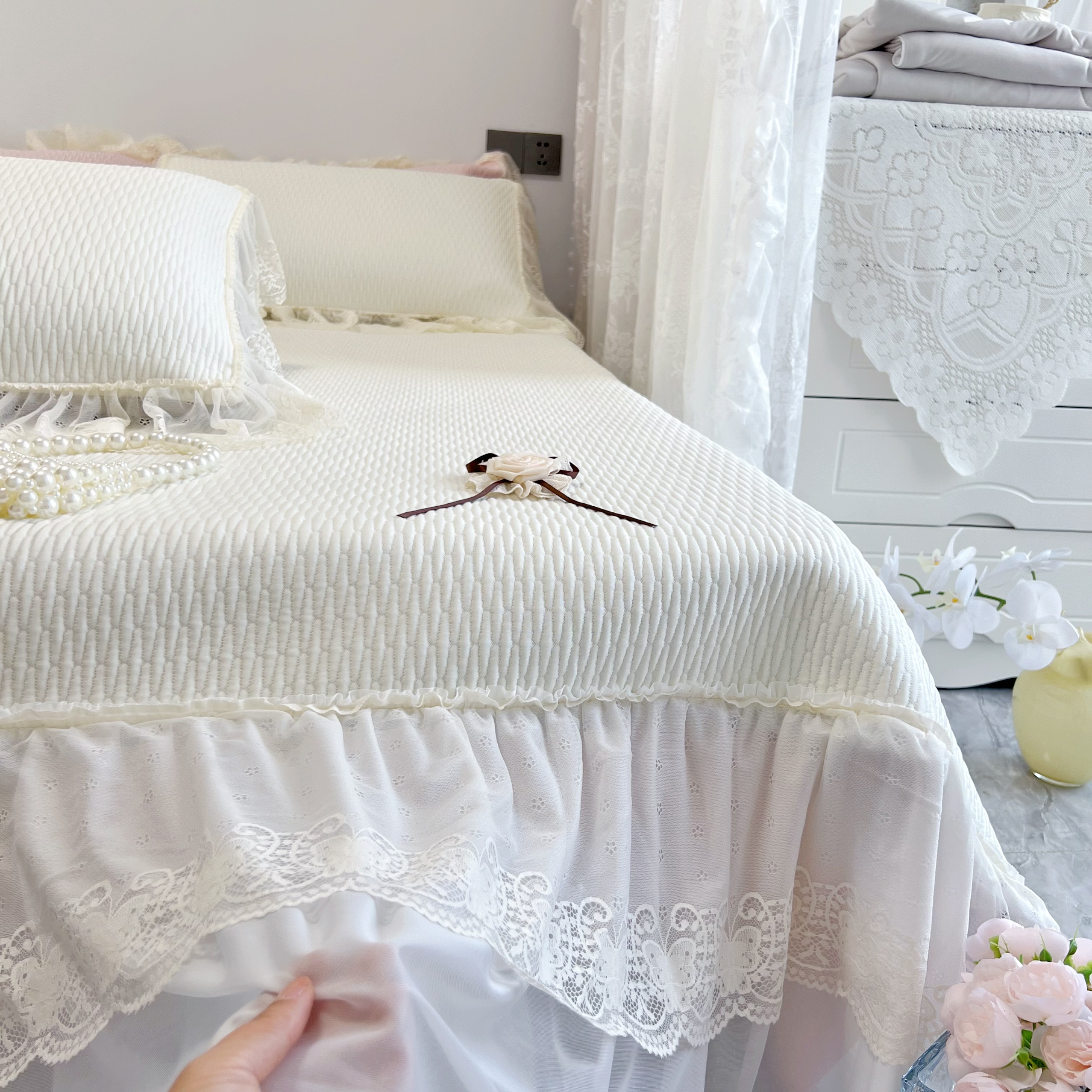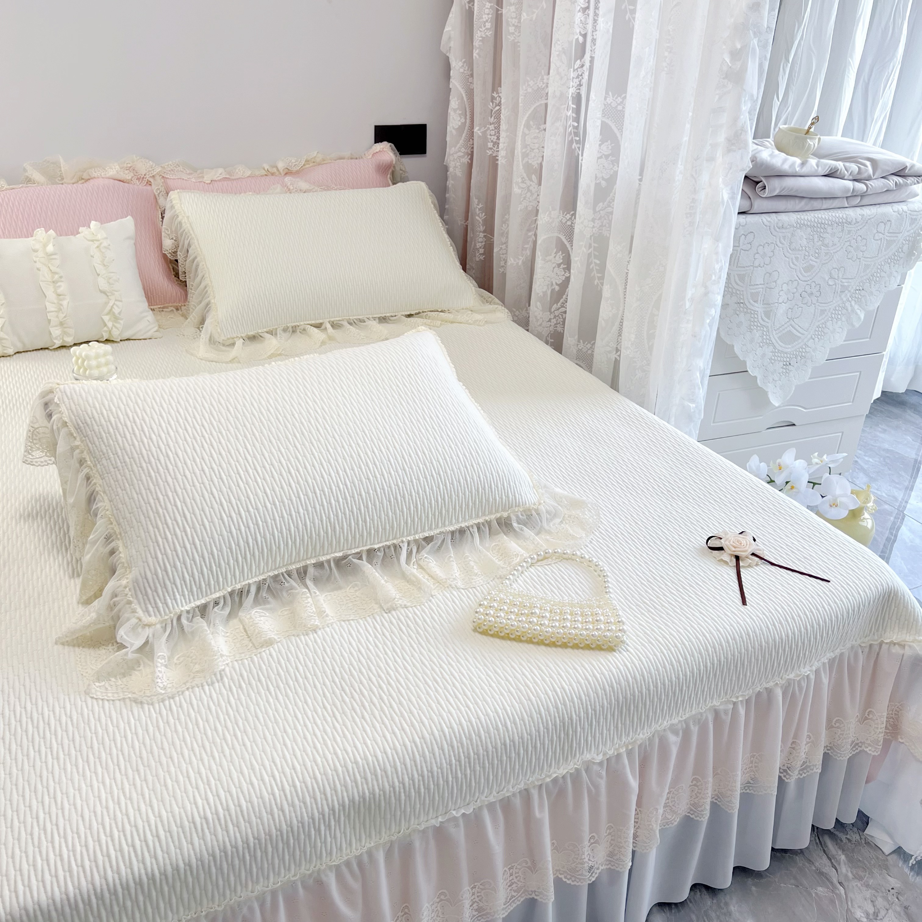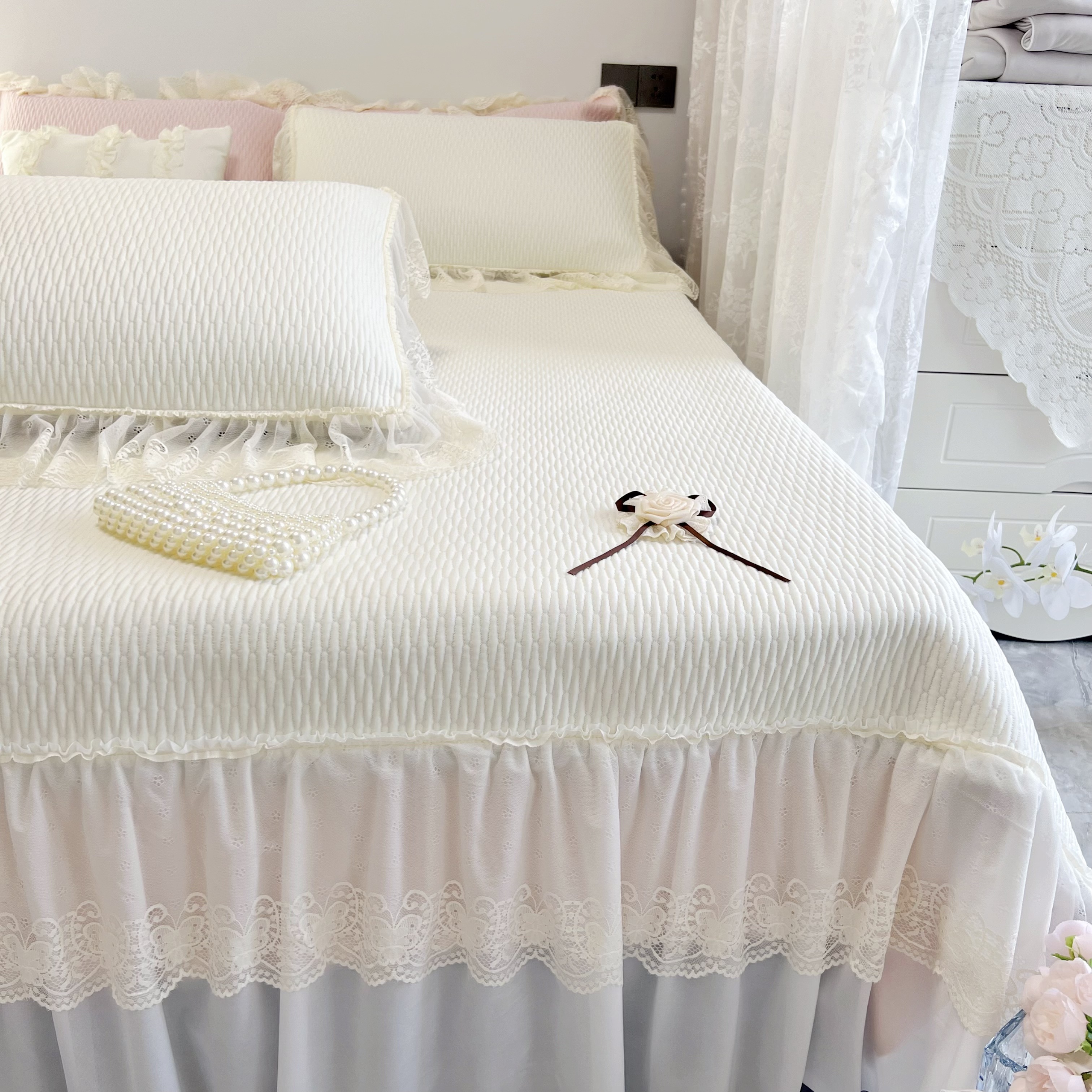 商品名称:恋尚羽 2026新款高分子PE凉泡泡大床裙凉感席波浪冰豆豆凉席席子三件套-系列 山茶可可 米白色