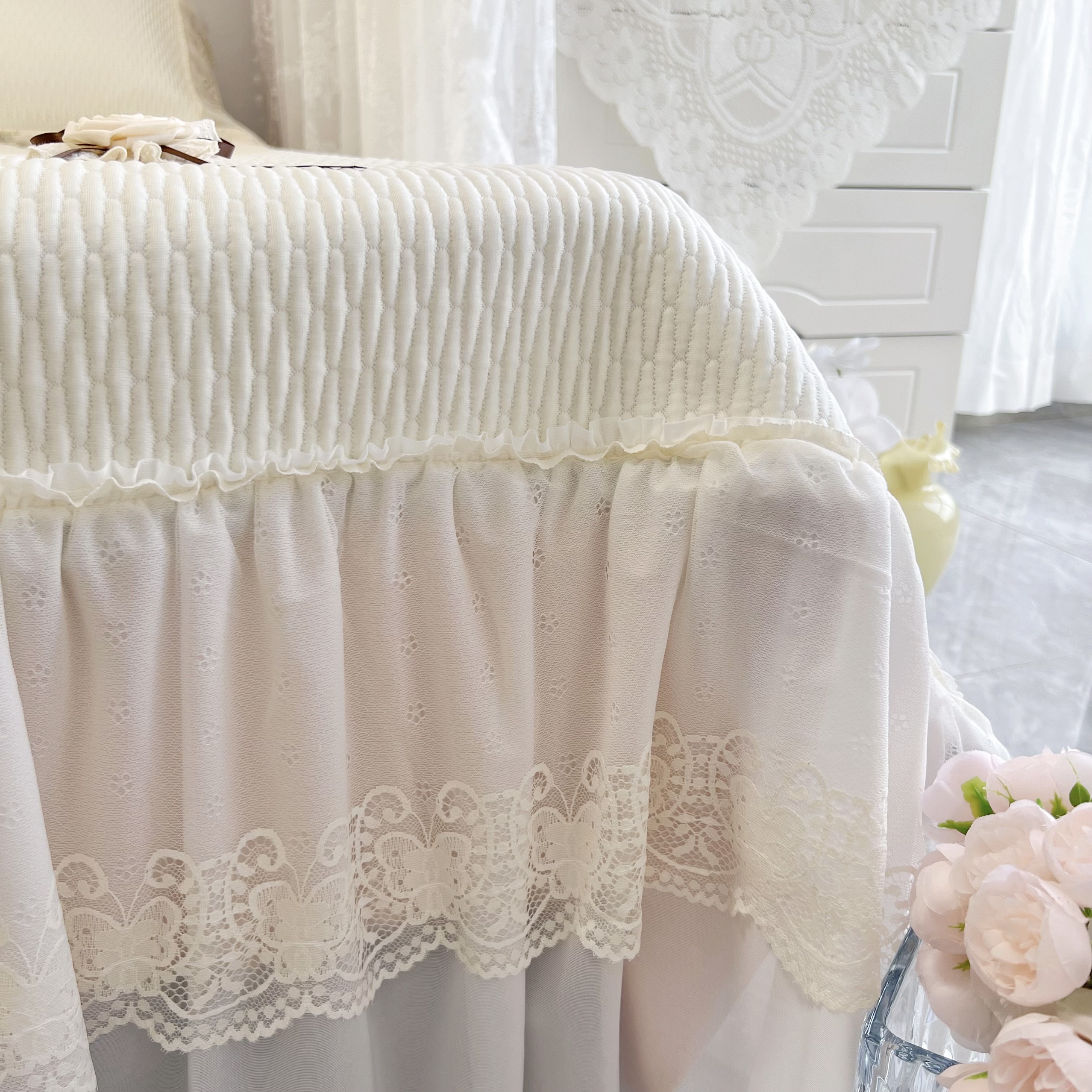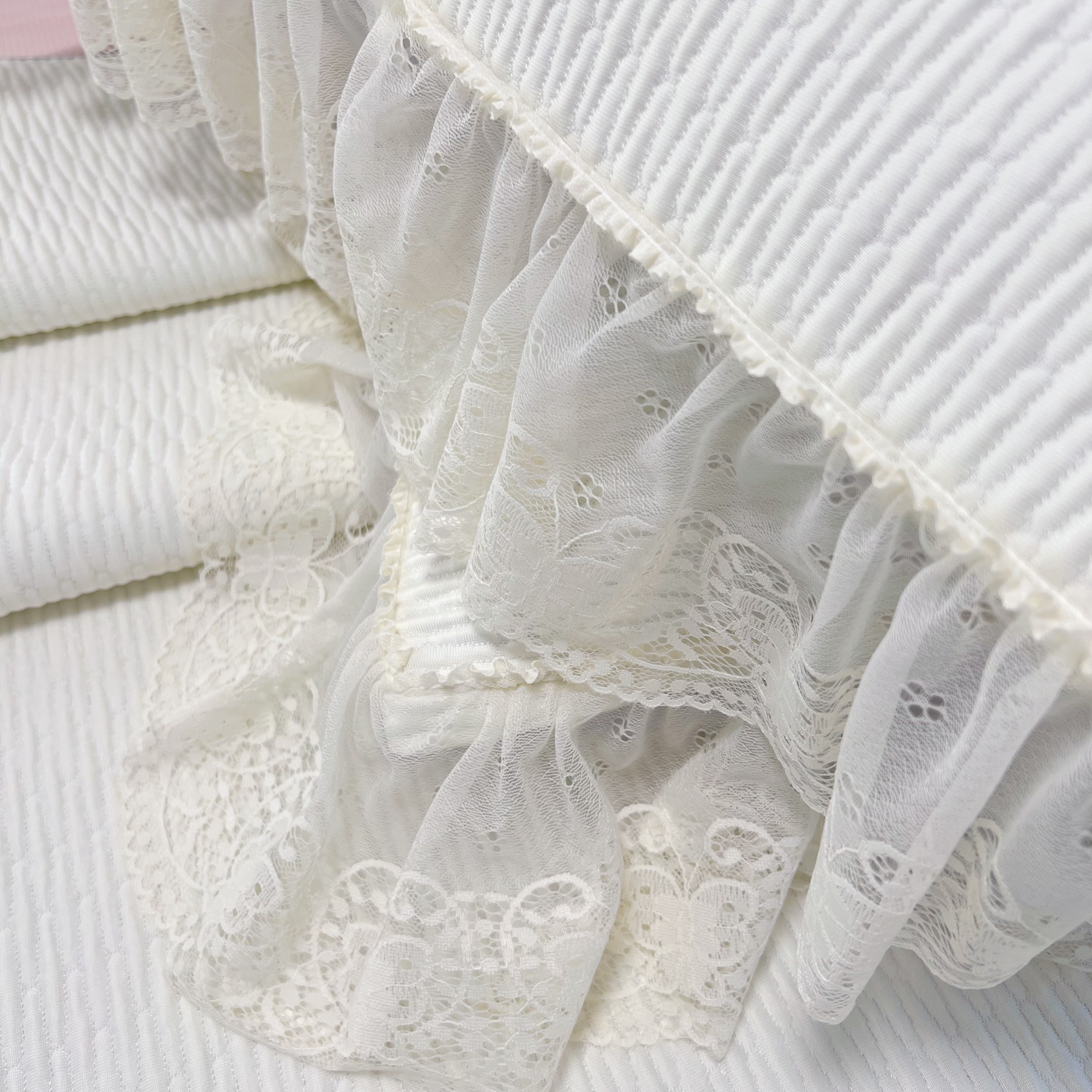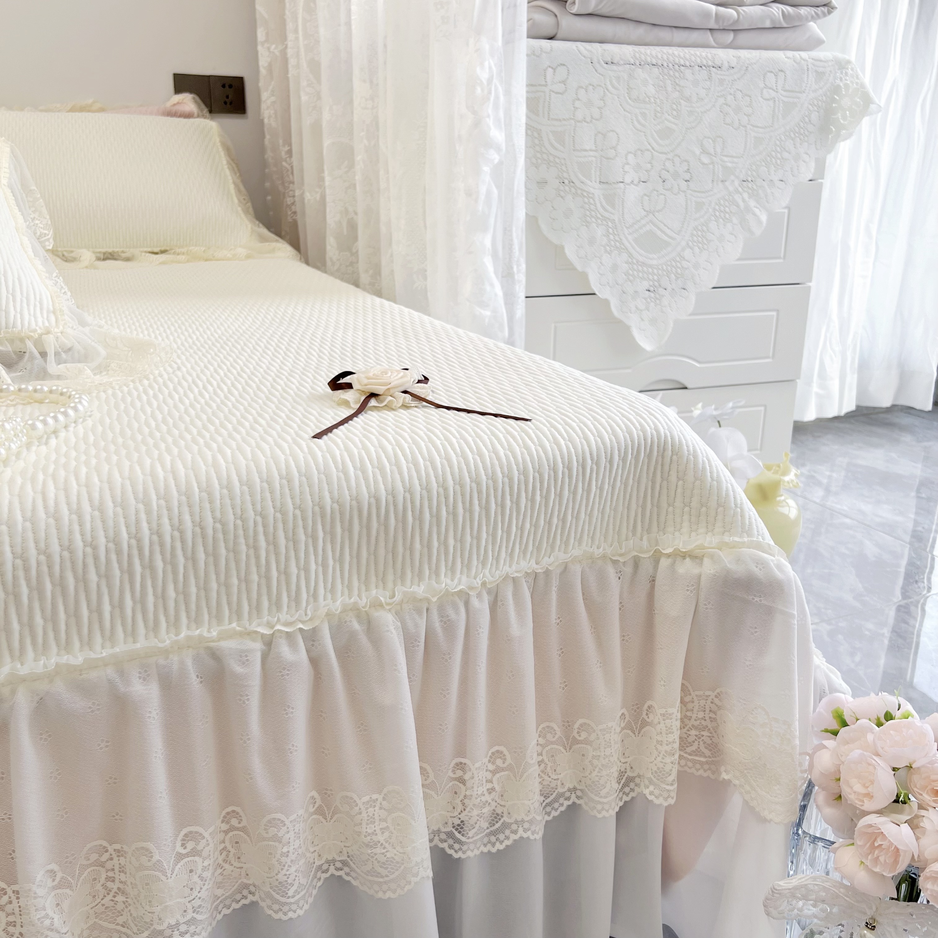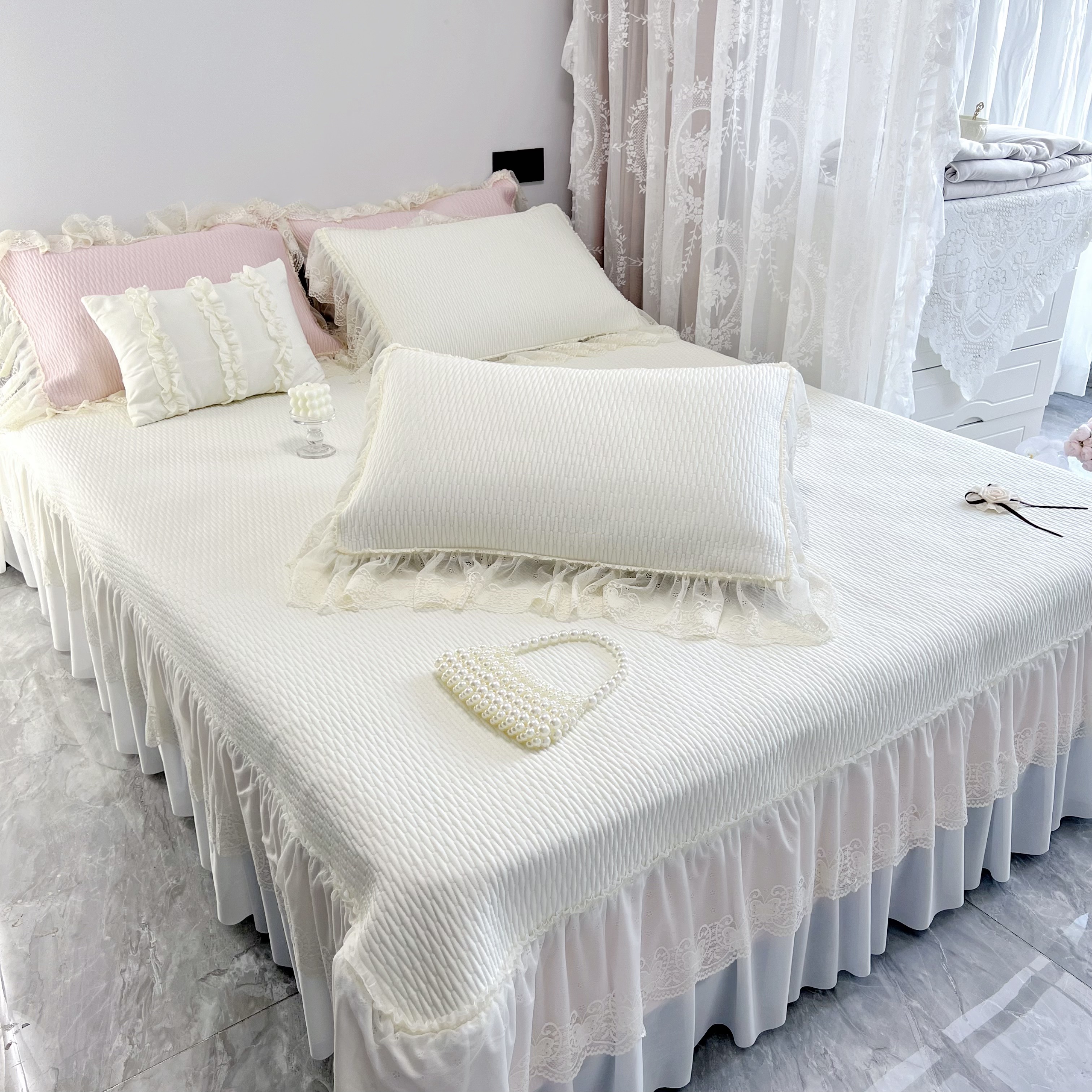 商品名称:恋尚羽 2026新款高分子PE凉泡泡大床裙凉感席波浪冰豆豆凉席席子三件套-系列 山茶可可 米白色