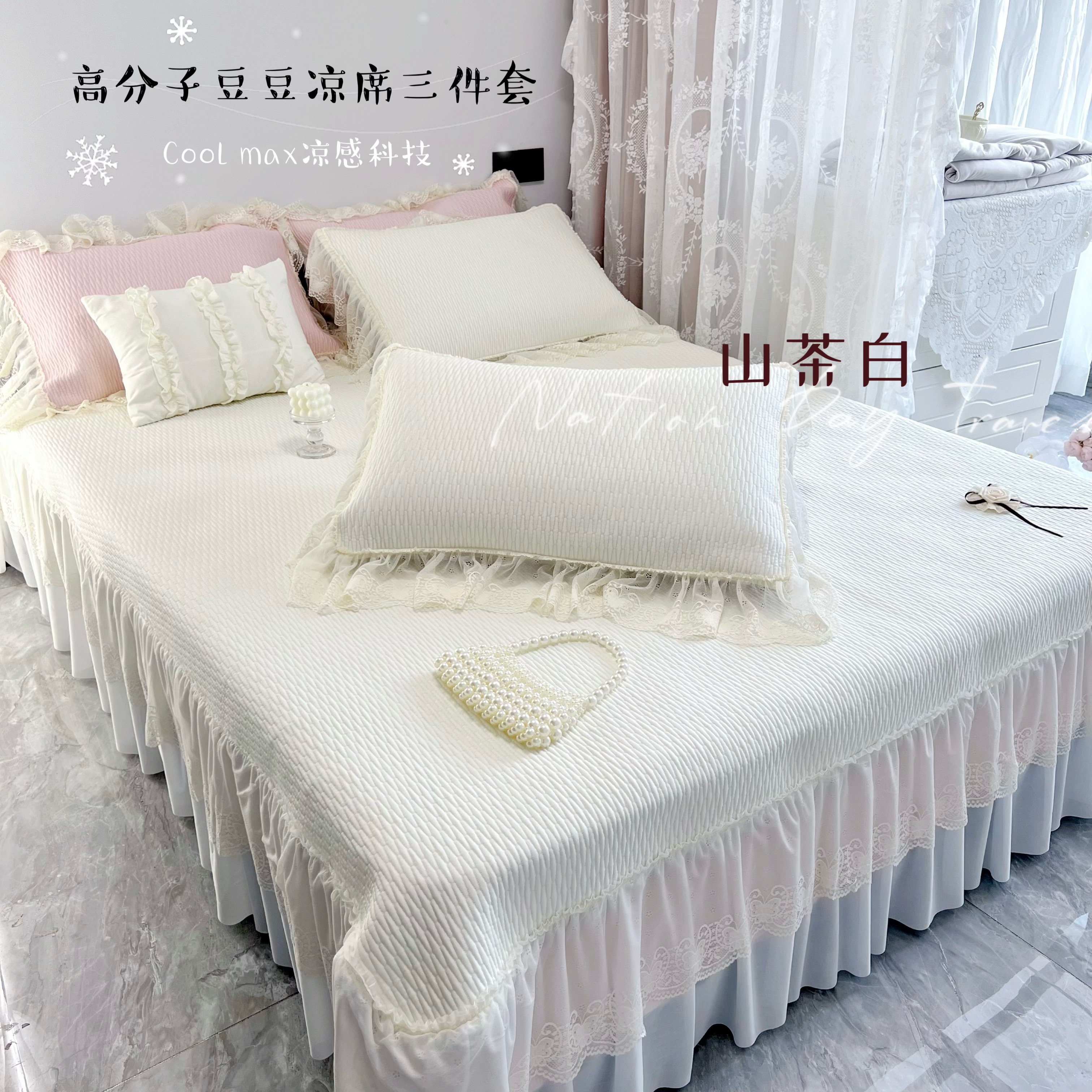 恋尚羽 2026新款高分子PE凉泡泡大床裙凉感席波浪冰豆豆凉席席子三件套-系列 山茶可可 米白色