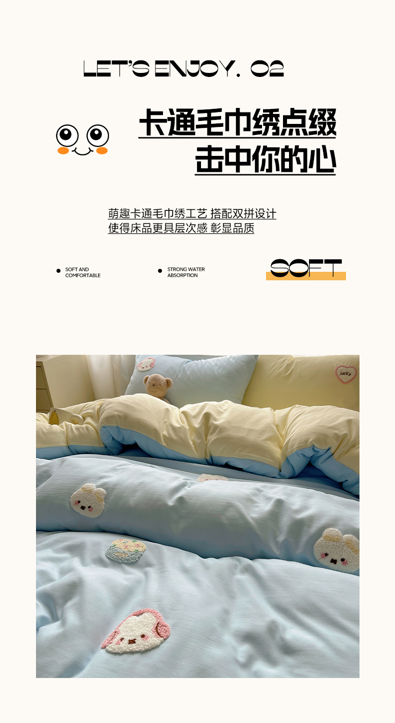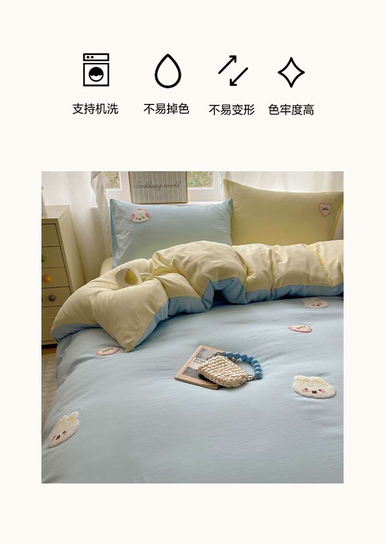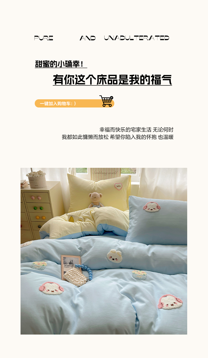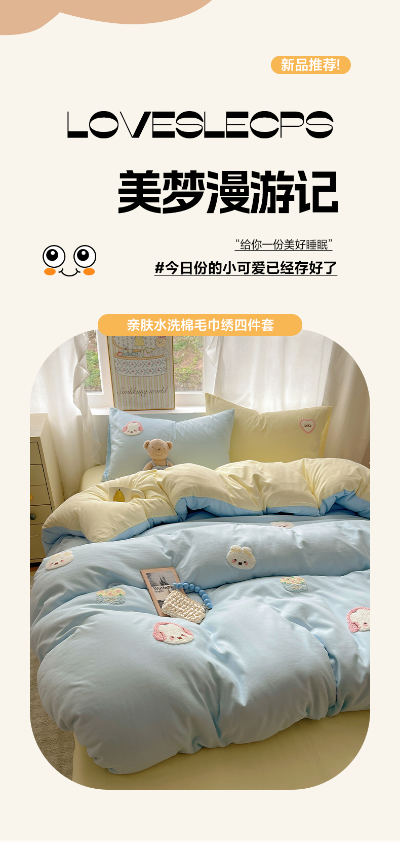 当前位置: 91家纺网 > 商品网购 > 床品套件 > 四件套 > 其它四件套 > 韩都家居 2026春夏新款亲肤舒适毛巾绣四件套(包含买家秀原图) 音乐兔