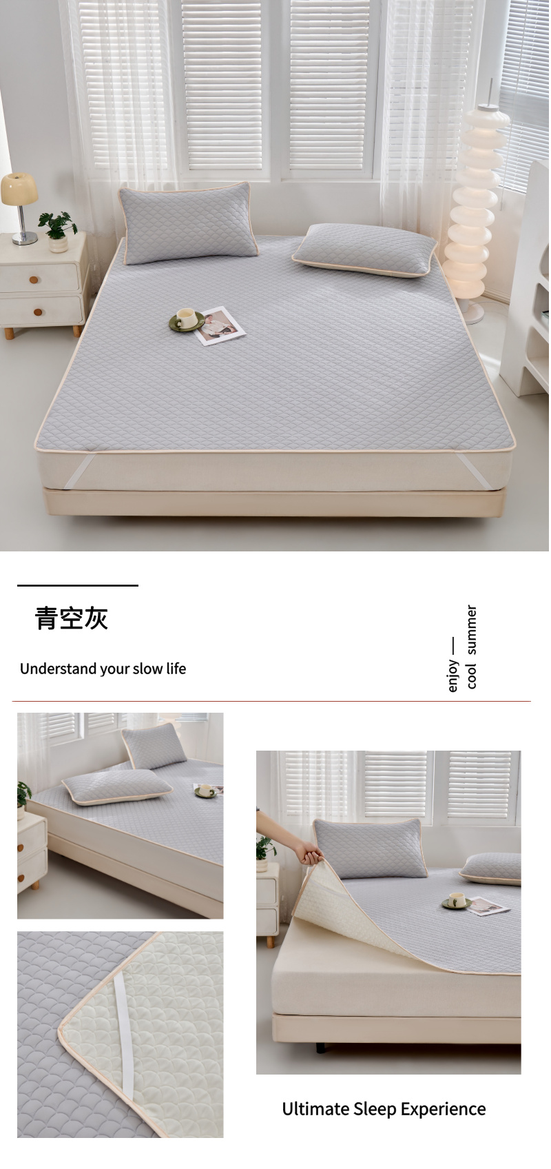 (总)羽梦家纺 2026新款硅胶床裙款凉席席子,深睡蓝,青空灰,柔云粉,淡蓝色,元气小熊,雾岛听花,雾粉花眠,雾里看花,云间花境