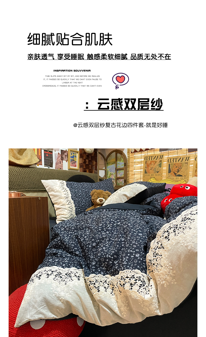 商品名称:(总)水墨江南 2026新款甜美复古花边四件套
