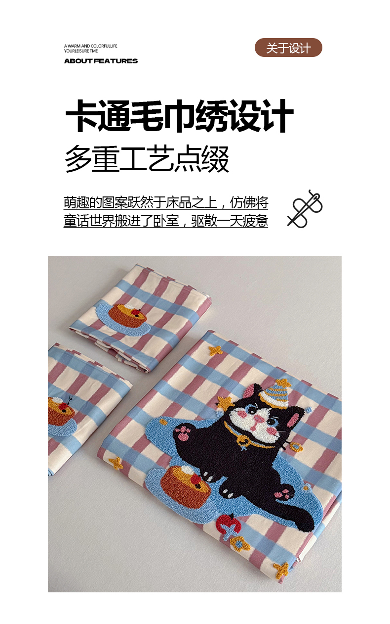 • 91家纺网 家纺一手货源 找家纺 (总)暖生活 2026新款全棉纯棉色织水洗棉毛巾绣床笠三件套,组合图仅做展示不可下单,KT日记,蓝鲸梦,墨镜小狗,下雨天,小企鹅,阅读星人