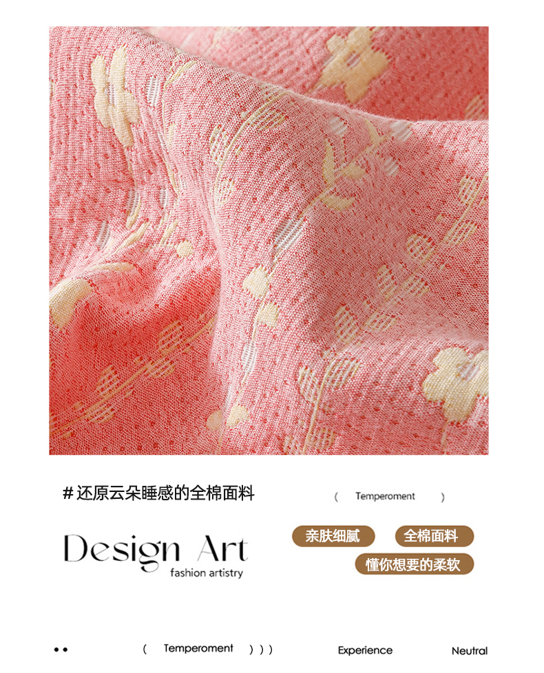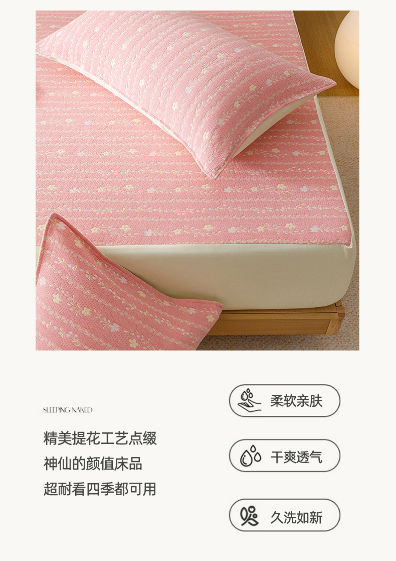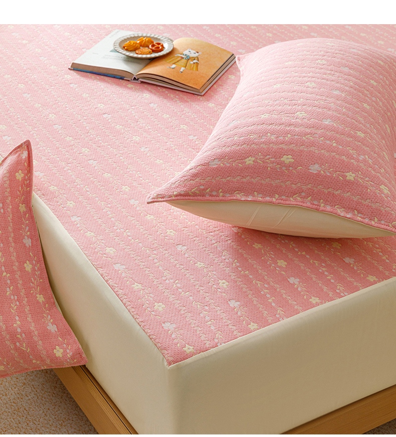 商品名称:悦然毛巾被 2026新款水洗三层纱布全棉床笠套件床单夹棉床罩A类单床笠床笠单件 空境粉