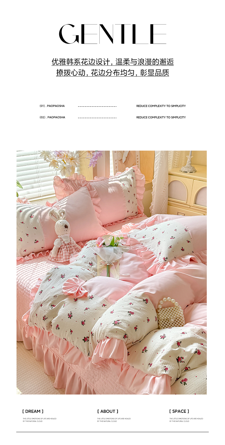 (总)唐人居 2026春夏新款皱皱水洗棉花边床盖四件套,安妮,半亩花田,宝格丽曼,彩色波点,初见,繁花,芬德拉,花影,卡地,玫瑰园,柔心花影,幸运小马,音乐派对,音乐企鹅