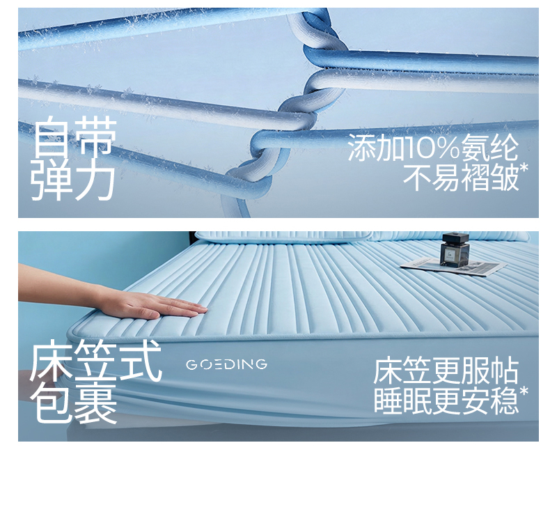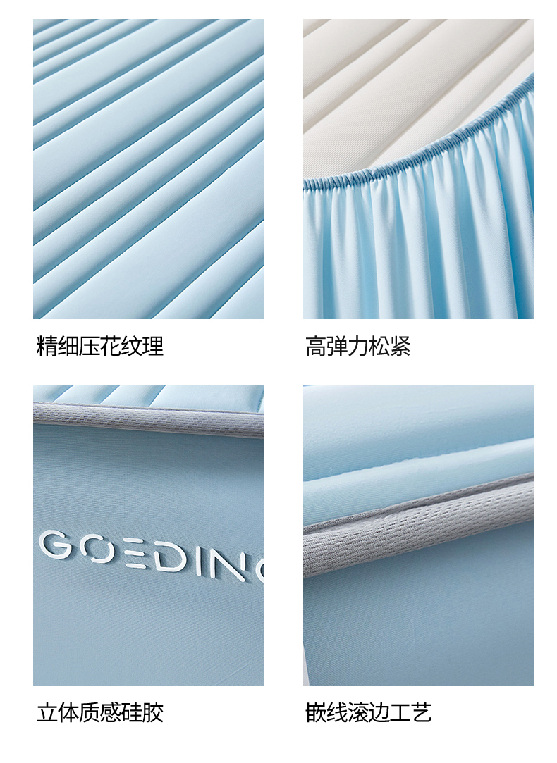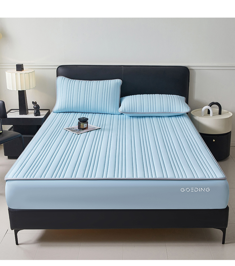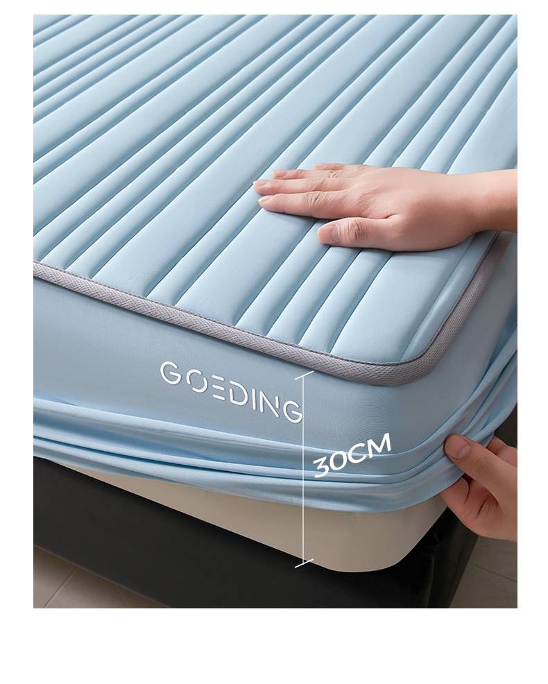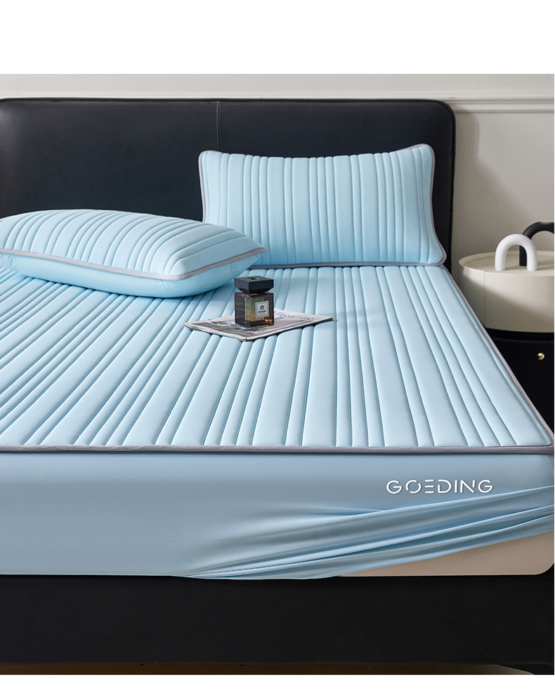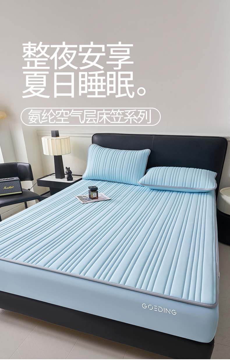 • 91家纺网 家纺一手货源 找家纺 雯豆家纺 2026春夏新品氨纶凉感床笠夹棉款床笠三件套床垫保护套 知夏-水蓝