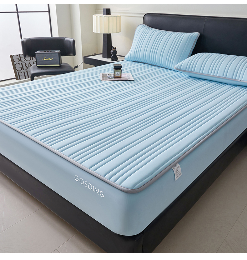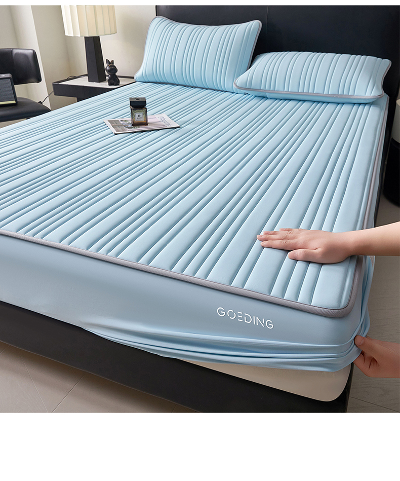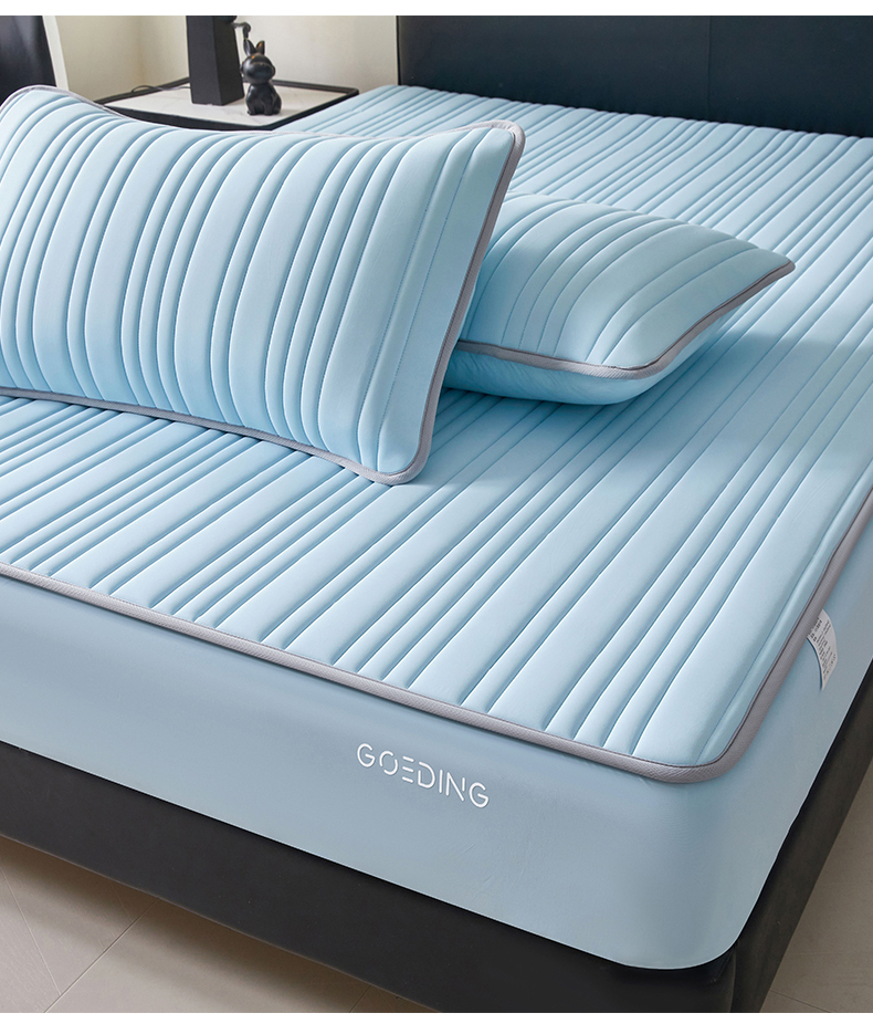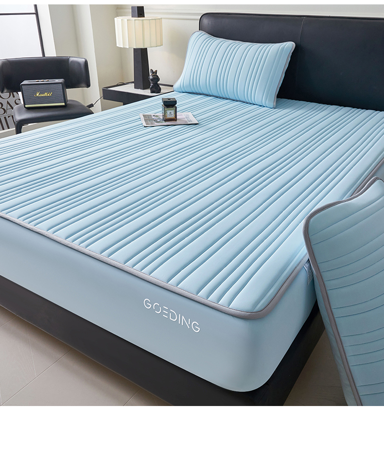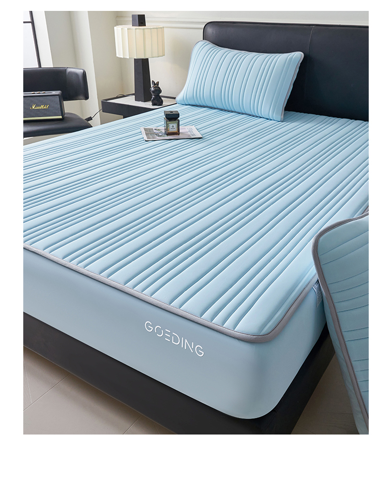 雯豆家纺 2026春夏新品氨纶凉感床笠夹棉款床笠三件套床垫保护套 知夏-水蓝
