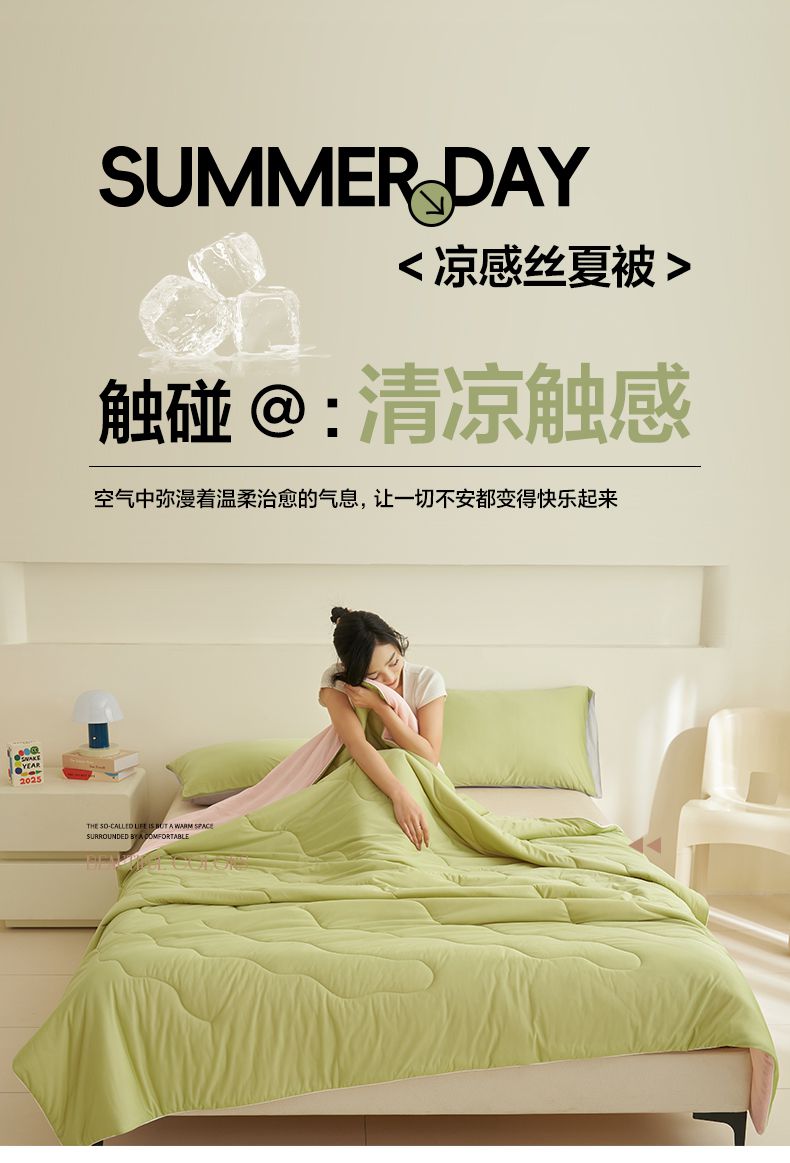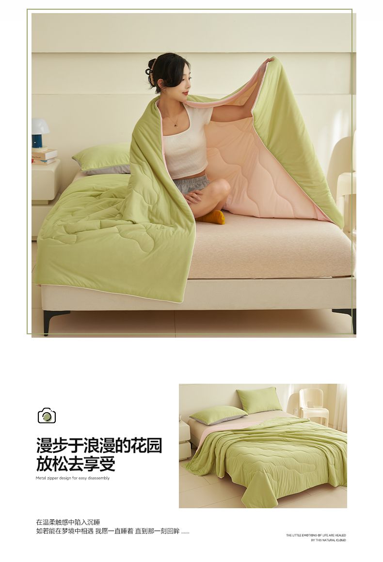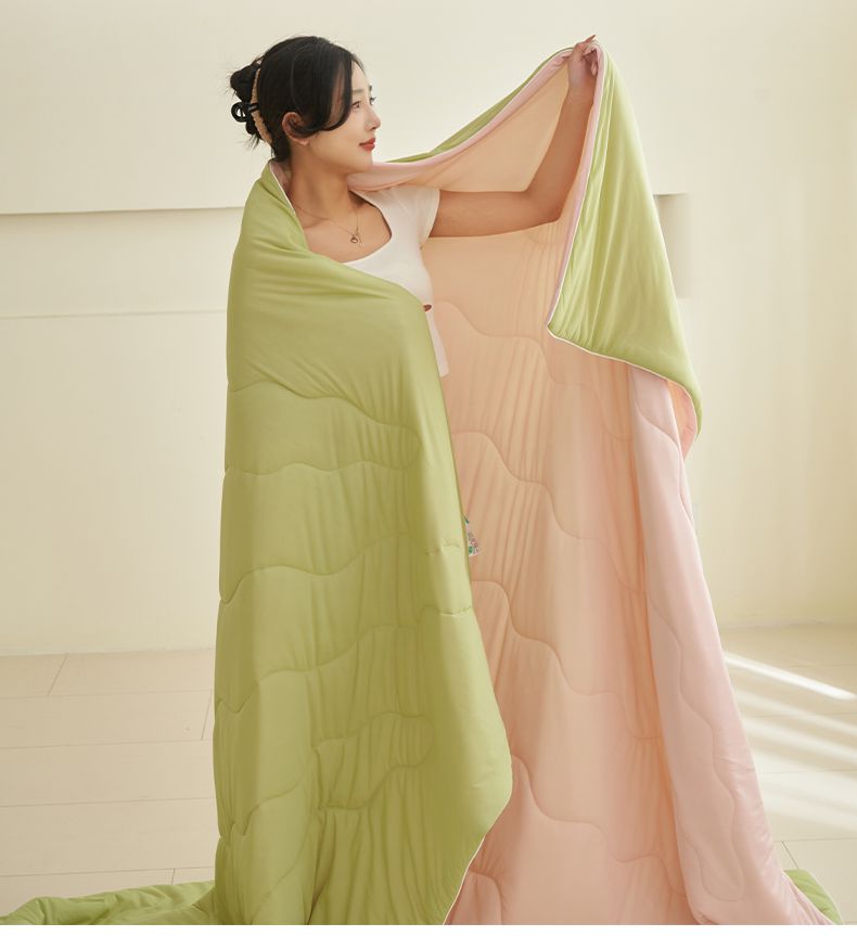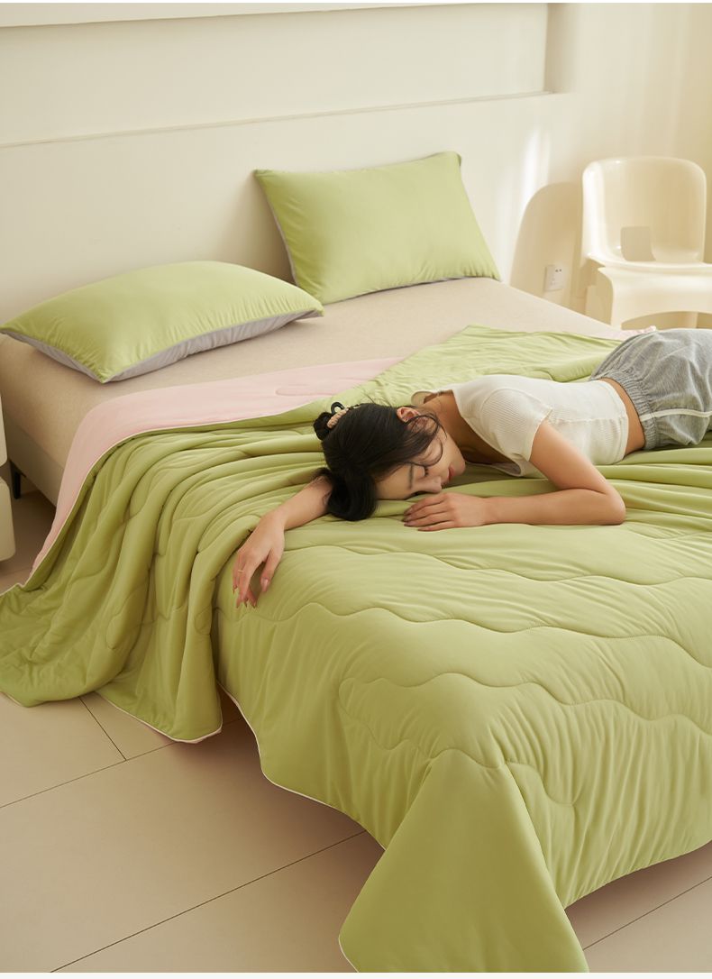 商品名称:畅销被业 2026新款凉感丝抗菌羽丝棉夏被夏凉被空调被 果绿-粉色