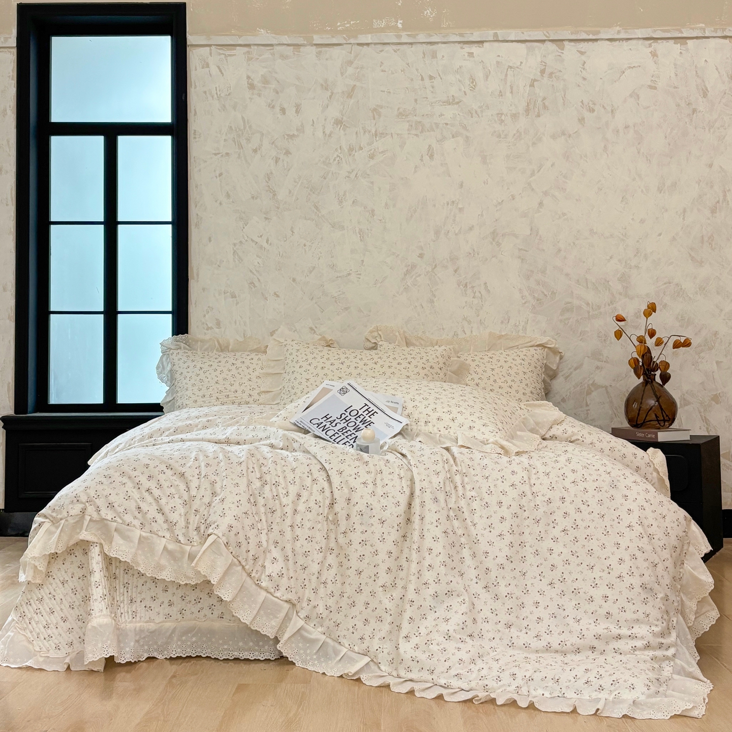 满座家居 2026新款法式纯棉花边全棉床盖四件套小碎花田园风 青禾
