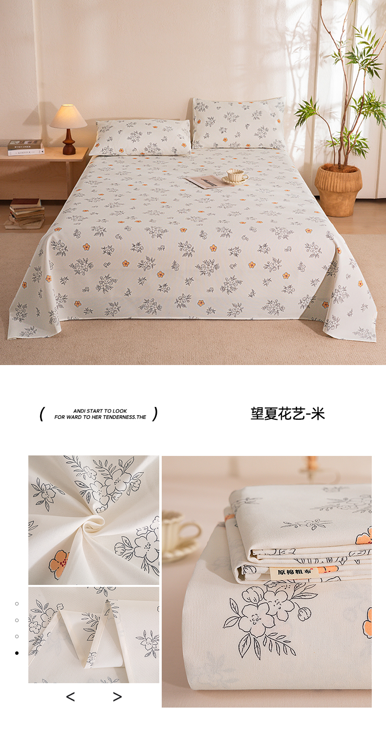 当前位置: 91家纺网 > 商品网购 > 床品套件 > 三件套 > 博弈家纺 2026新款亲肤舒适原棉老粗布床单凉席三件套系列 望夏花艺-米
