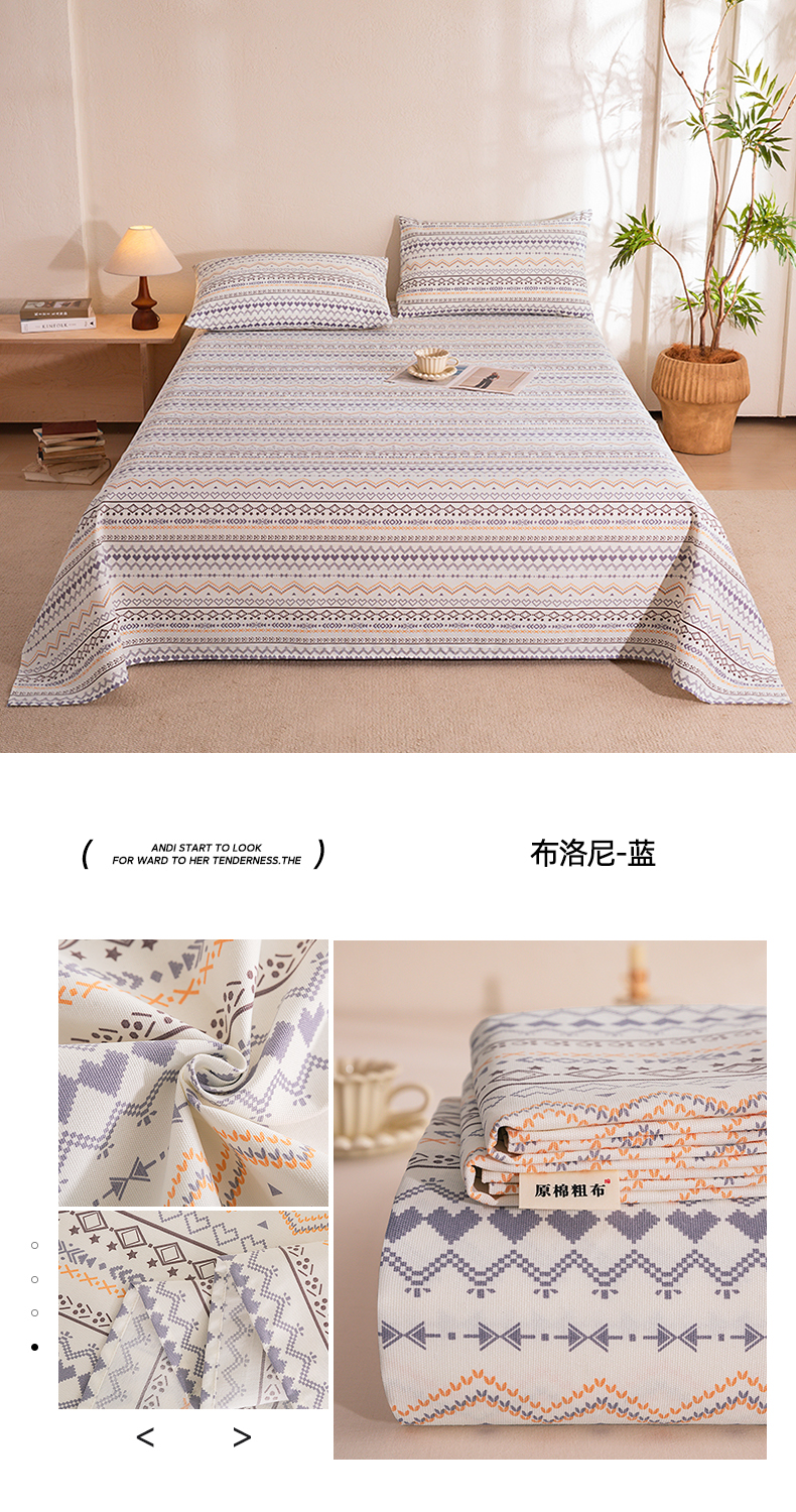 当前位置: 91家纺网 > 商品网购 > 床品套件 > 三件套 > 博弈家纺 2026新款亲肤舒适原棉老粗布床单凉席三件套系列 布洛尼-蓝