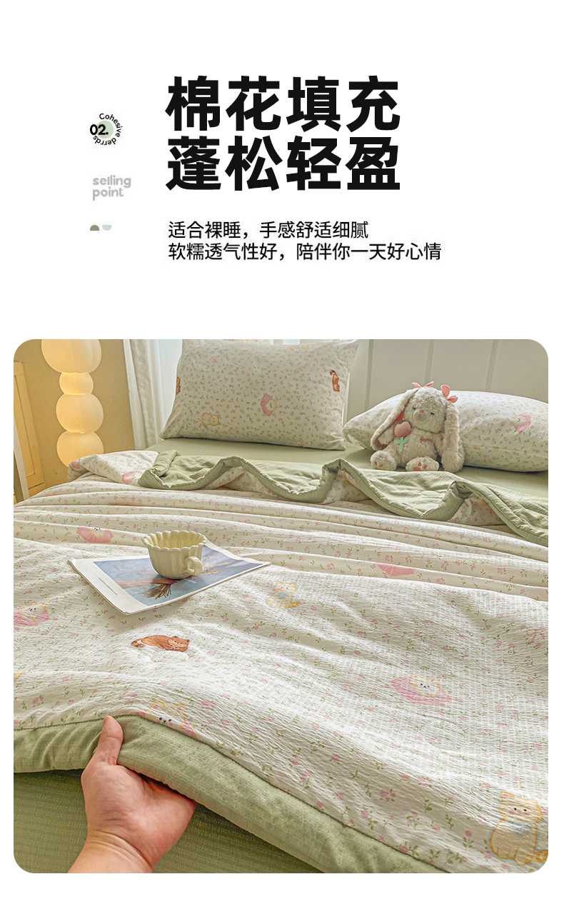 商品名称:爱屋及屋 2026春夏新款小清新双层纱宽包边棉花夏被夏凉被空调被 治愈小猫