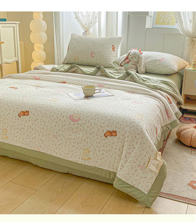 爱屋及屋 2026春夏新款小清新双层纱宽包边棉花夏被夏凉被空调被 治愈小猫