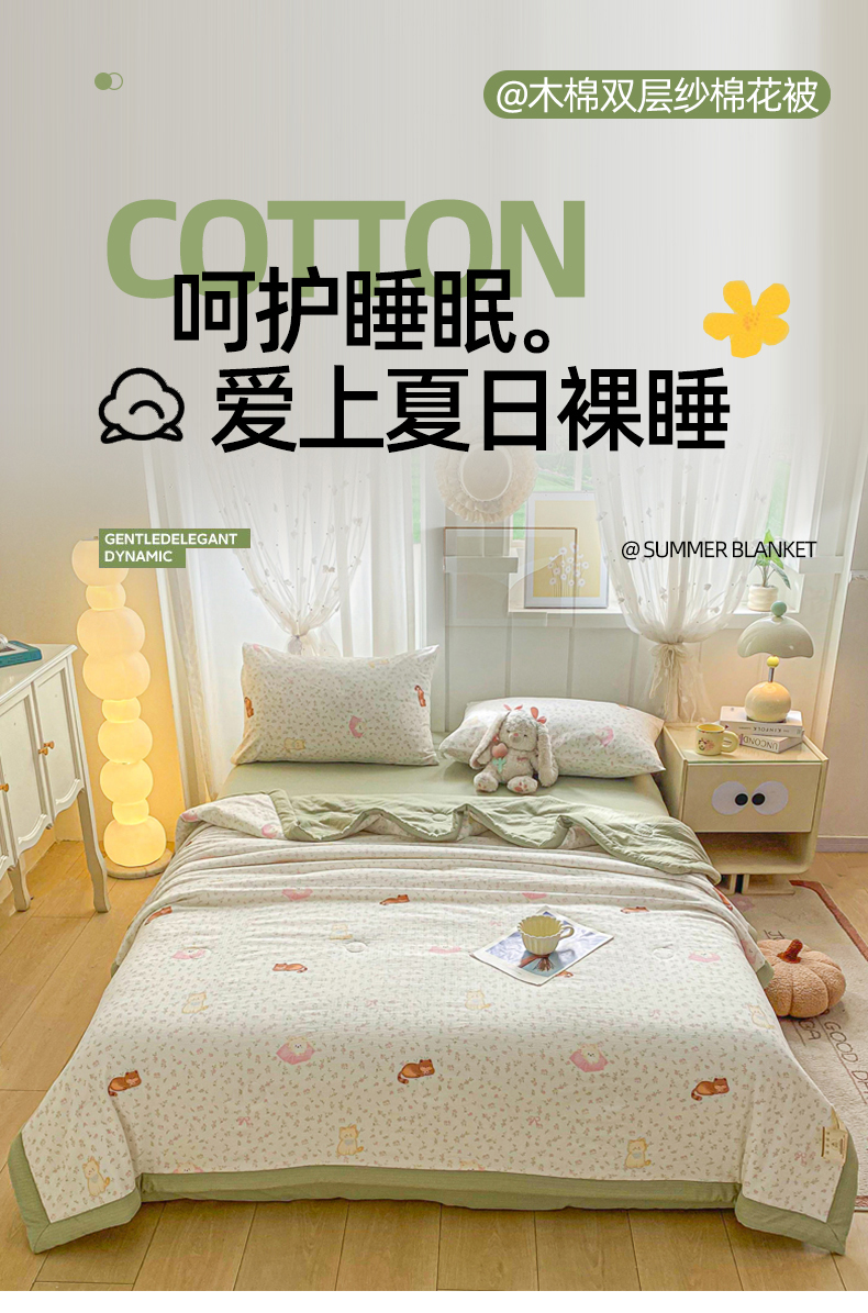 (总)爱屋及屋 2026新款小清新双层纱宽包边棉花被夏凉被空调被夏被,春日小猫,动感星星,繁花-蓝,花影,花之兔,蓝点点,蓝色小丫,萌宠集,奶油块块,苹果猫,像素KT,小熊猫,星星小马,云感-蓝,治愈小猫