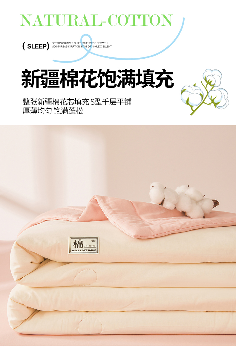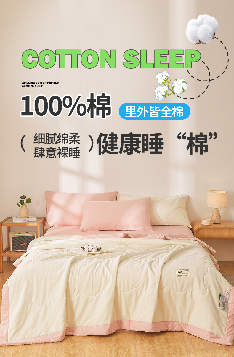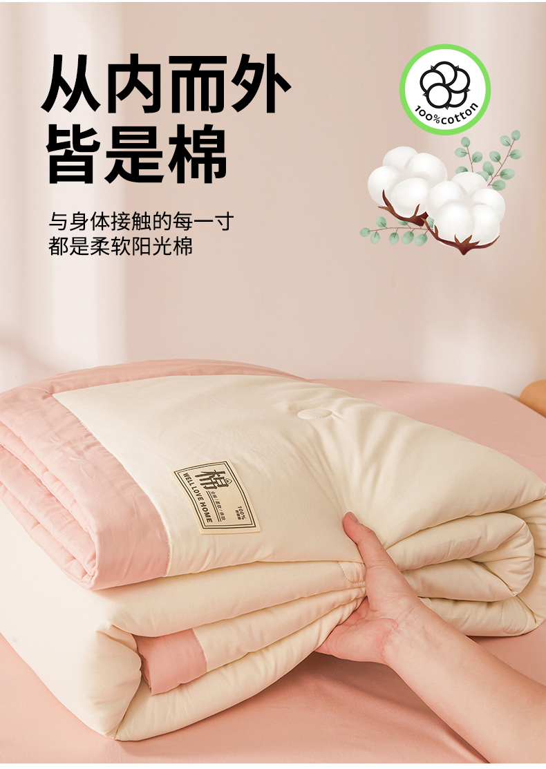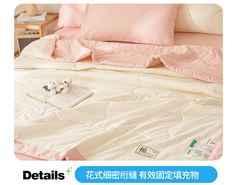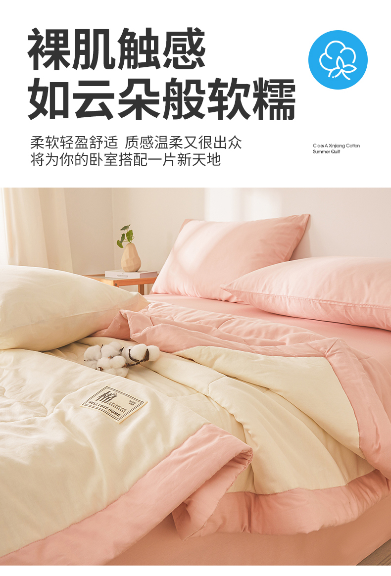 • 91家纺网 家纺一手货源 找家纺 晓时候 2026新款纯色100%里外全棉新疆棉花被纯棉夏凉被空调被夏被四件套被子被芯 里外全棉-月光白拼粉