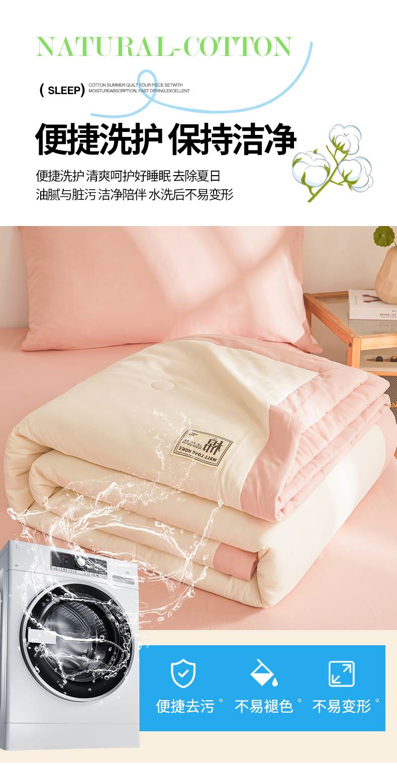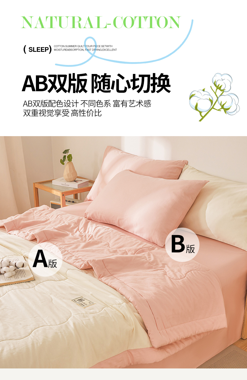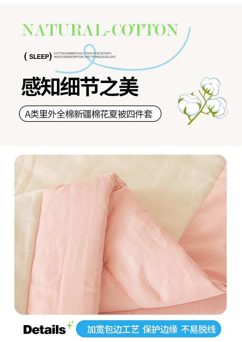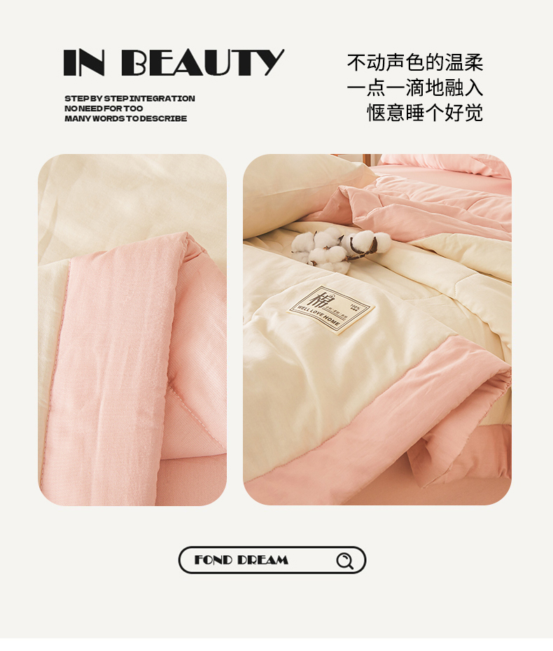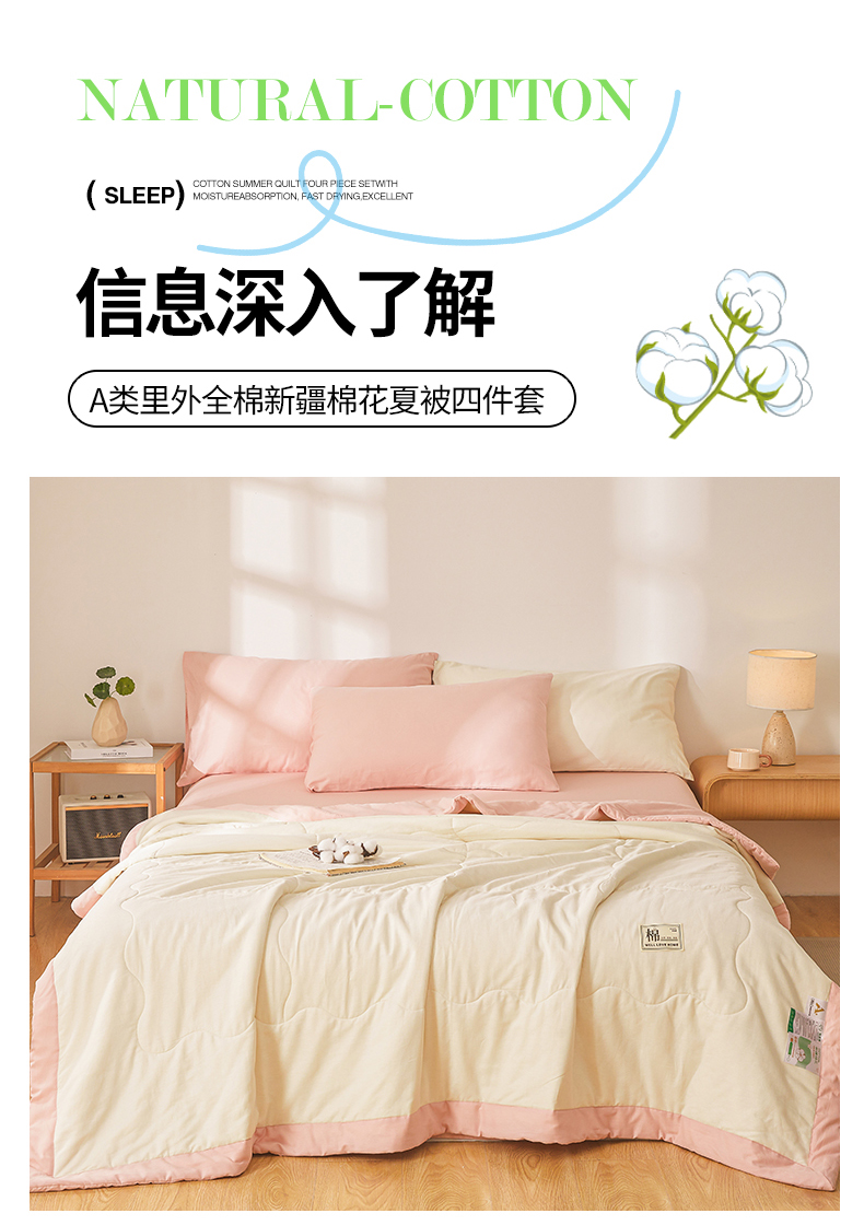• 91家纺网 家纺一手货源 找家纺 晓时候 2026新款纯色100%里外全棉新疆棉花被纯棉夏凉被空调被夏被四件套被子被芯 里外全棉-月光白拼粉