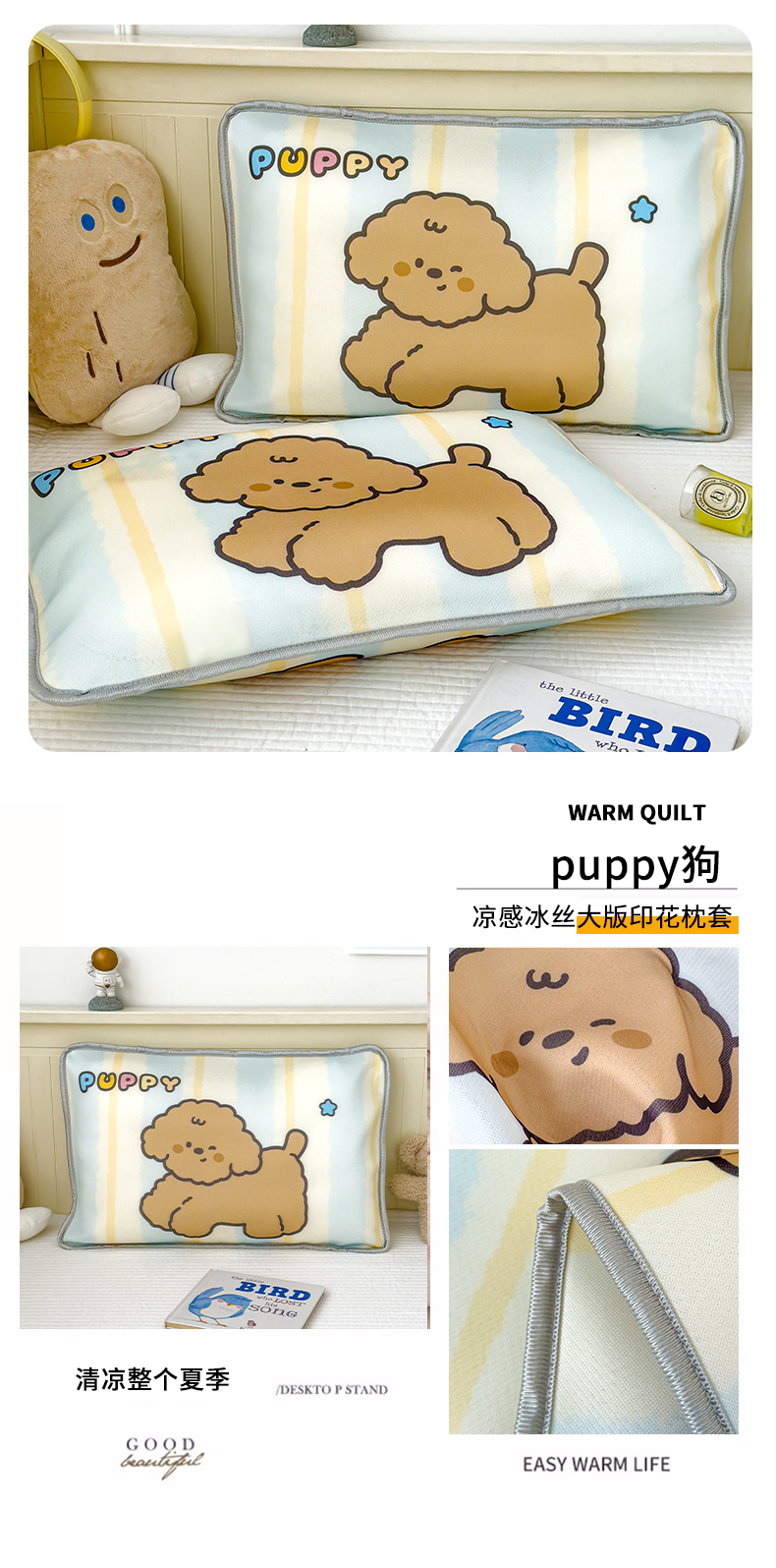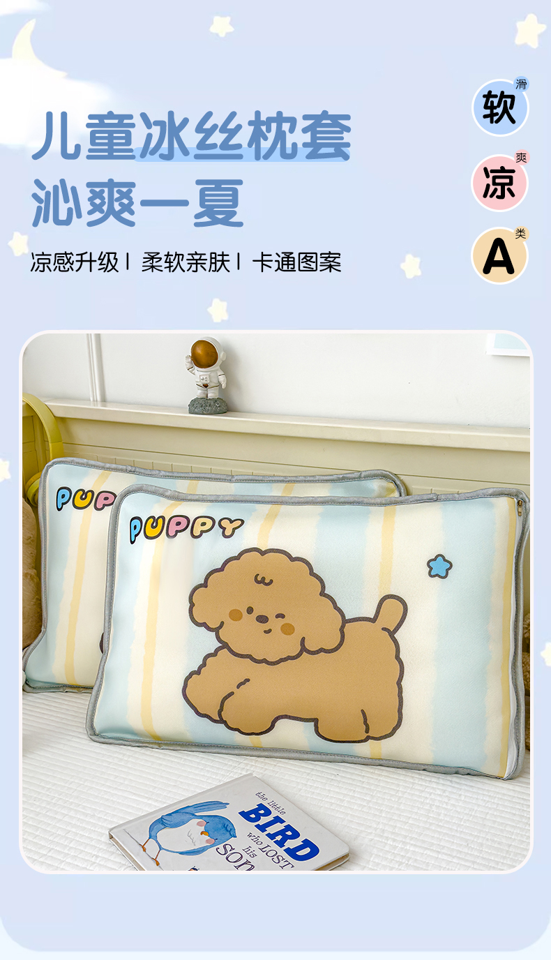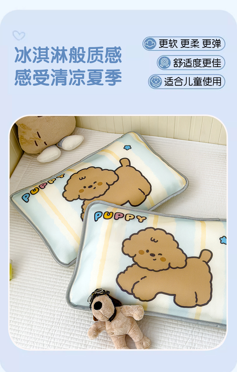 • 91家纺网 家纺一手货源 找家纺 丽美人家纺 2026新款柔软亲肤儿童冰丝枕套 puppy狗