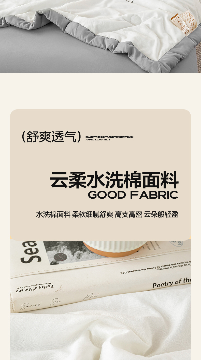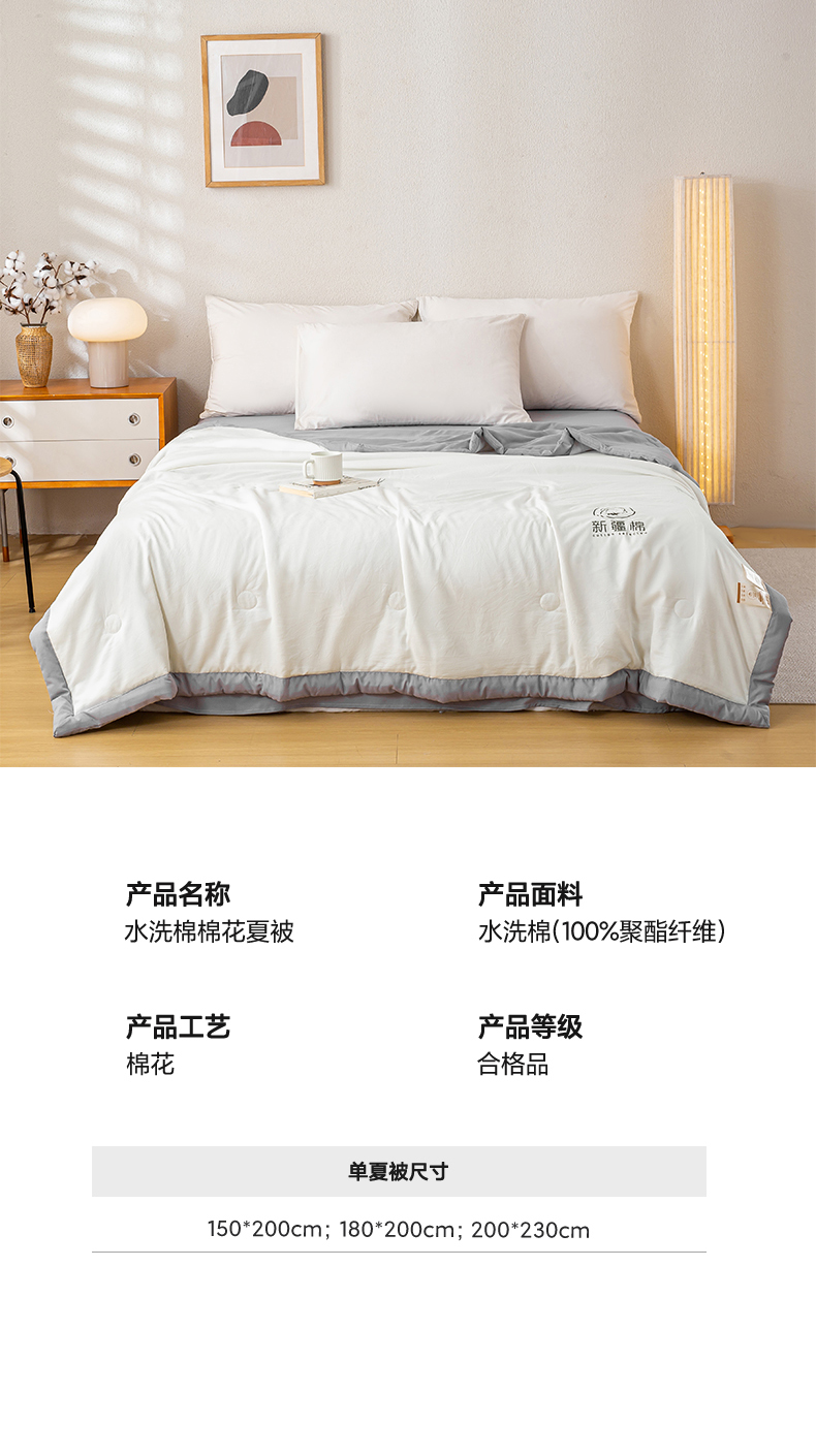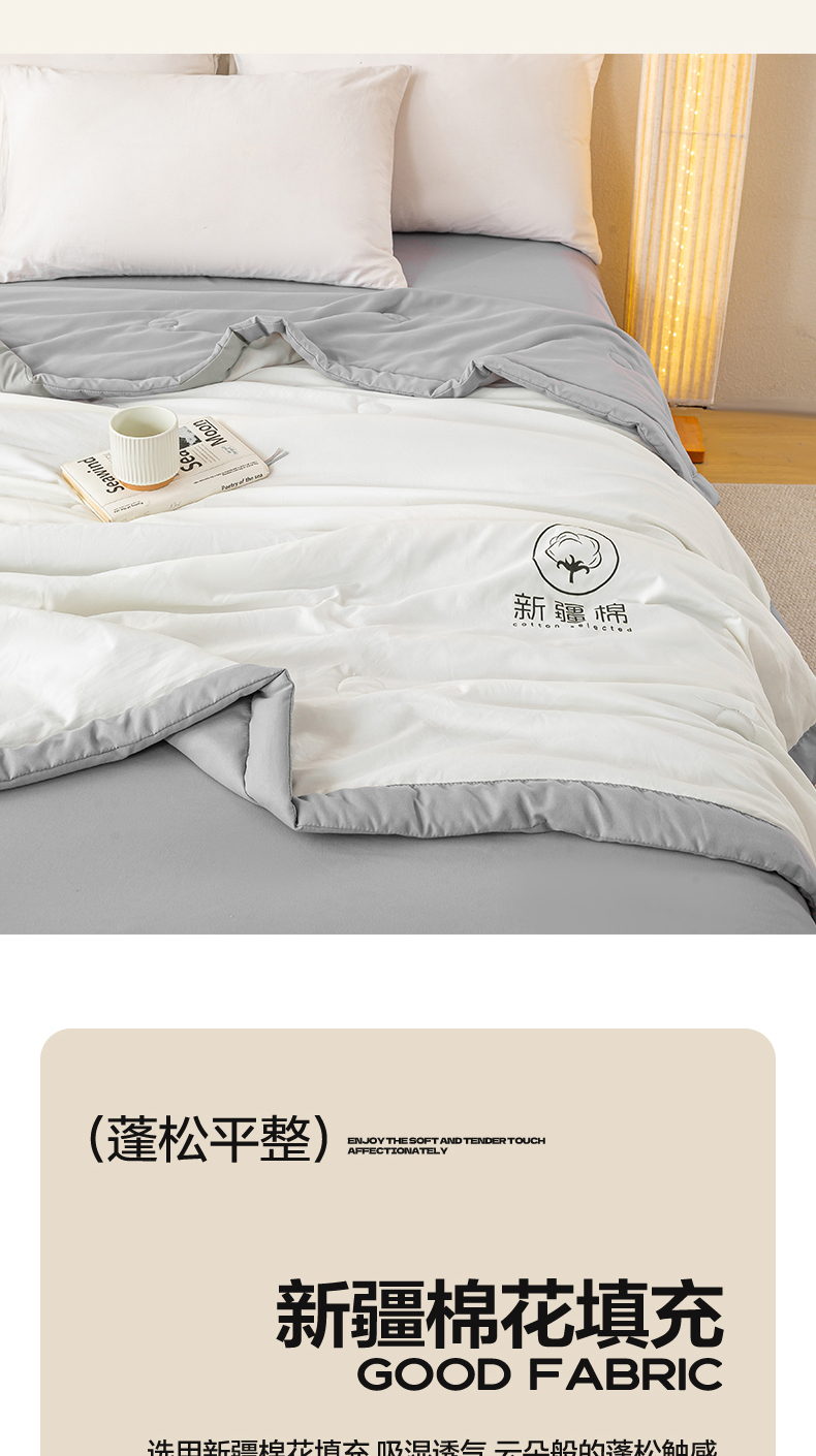 憨豆家纺 2026春夏新款 水洗棉纯色双拼棉花被夏凉被空调被(常年有货款) 棉朵-浅灰白