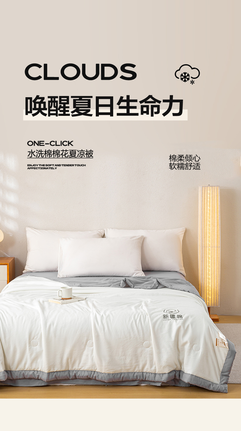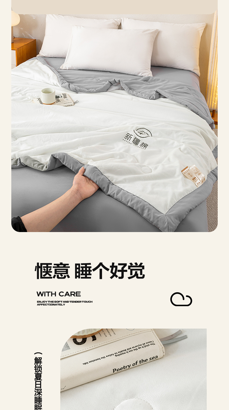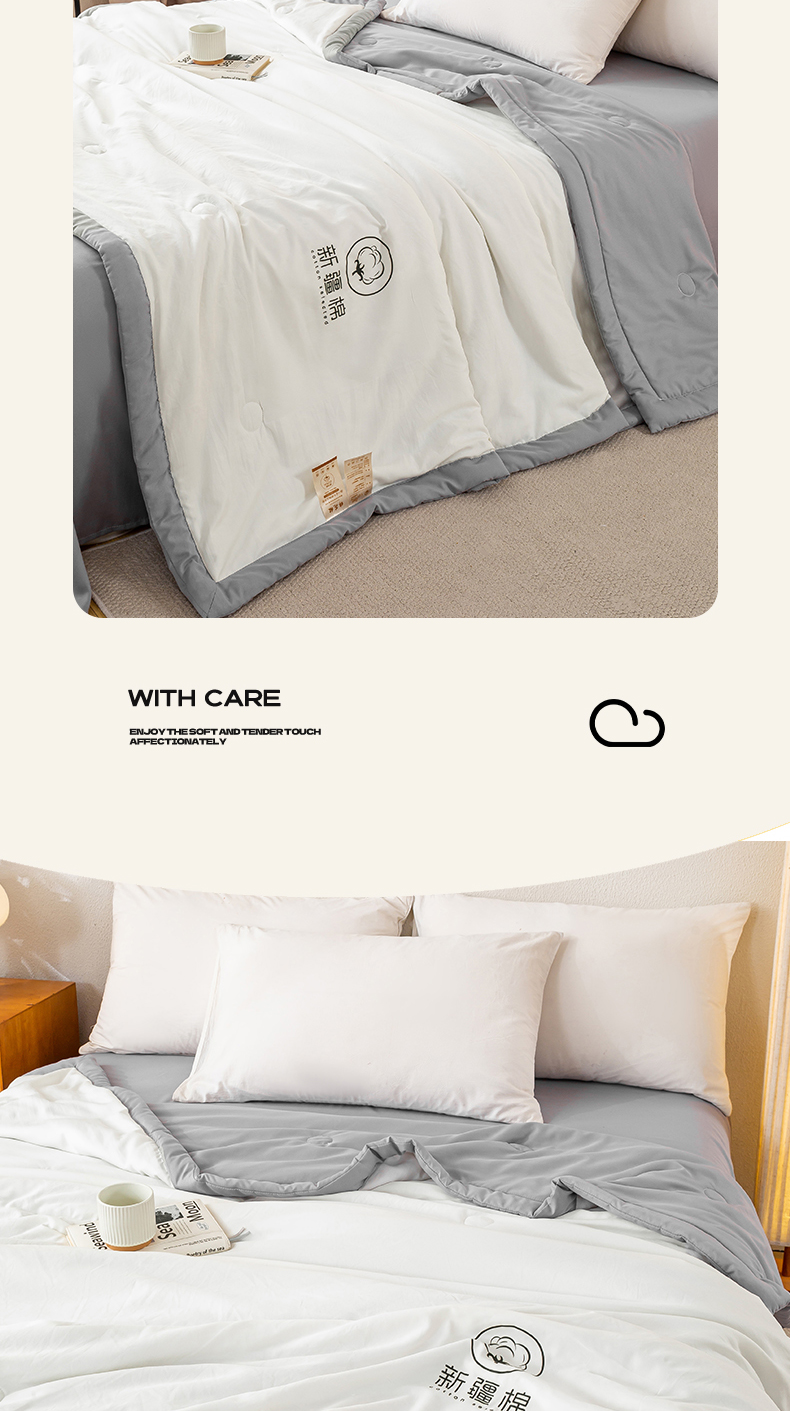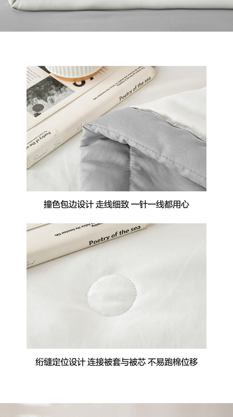 憨豆家纺 2026春夏新款 水洗棉纯色双拼棉花被夏凉被空调被(常年有货款) 棉朵-浅灰白