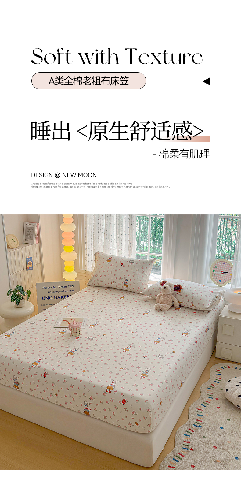• 91家纺网 家纺一手货源 找家纺 慕梵家居 2026春夏新款全棉纯棉老粗布单床笠 床笠单件 蘑菇兔