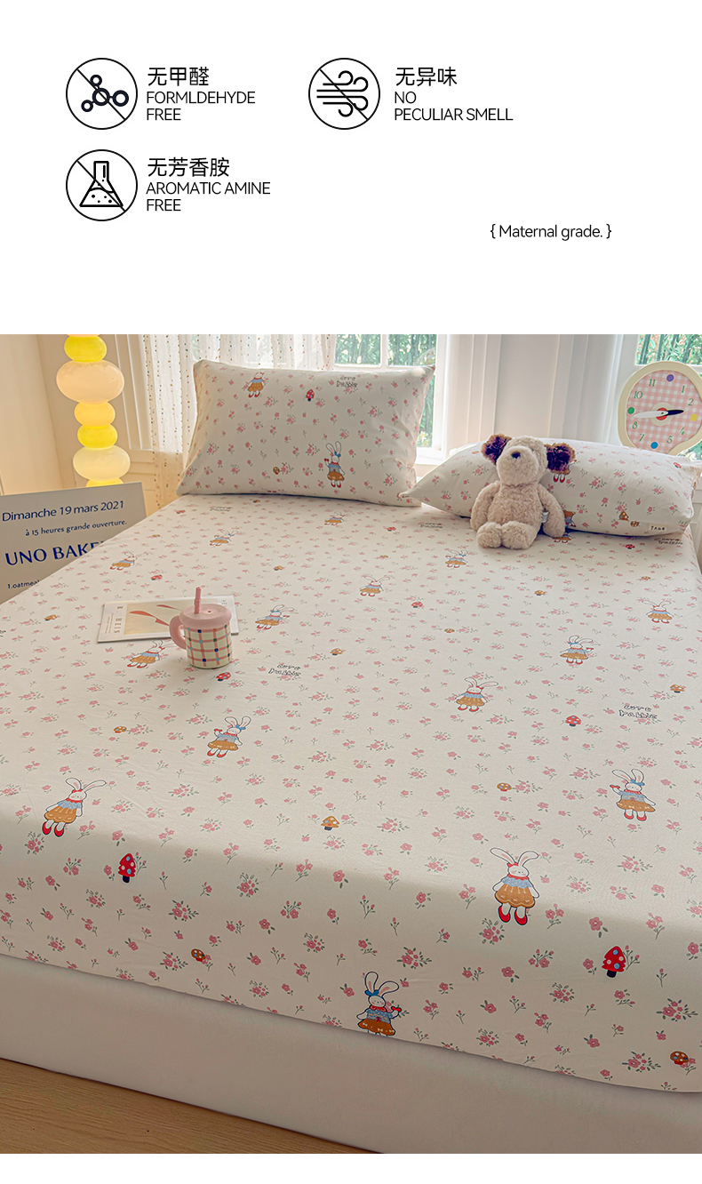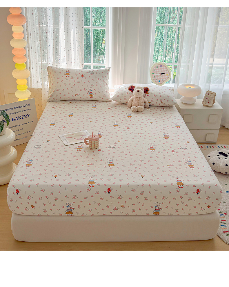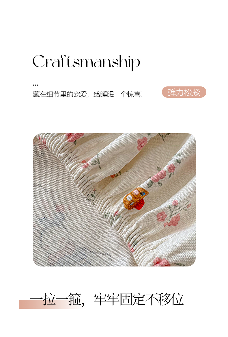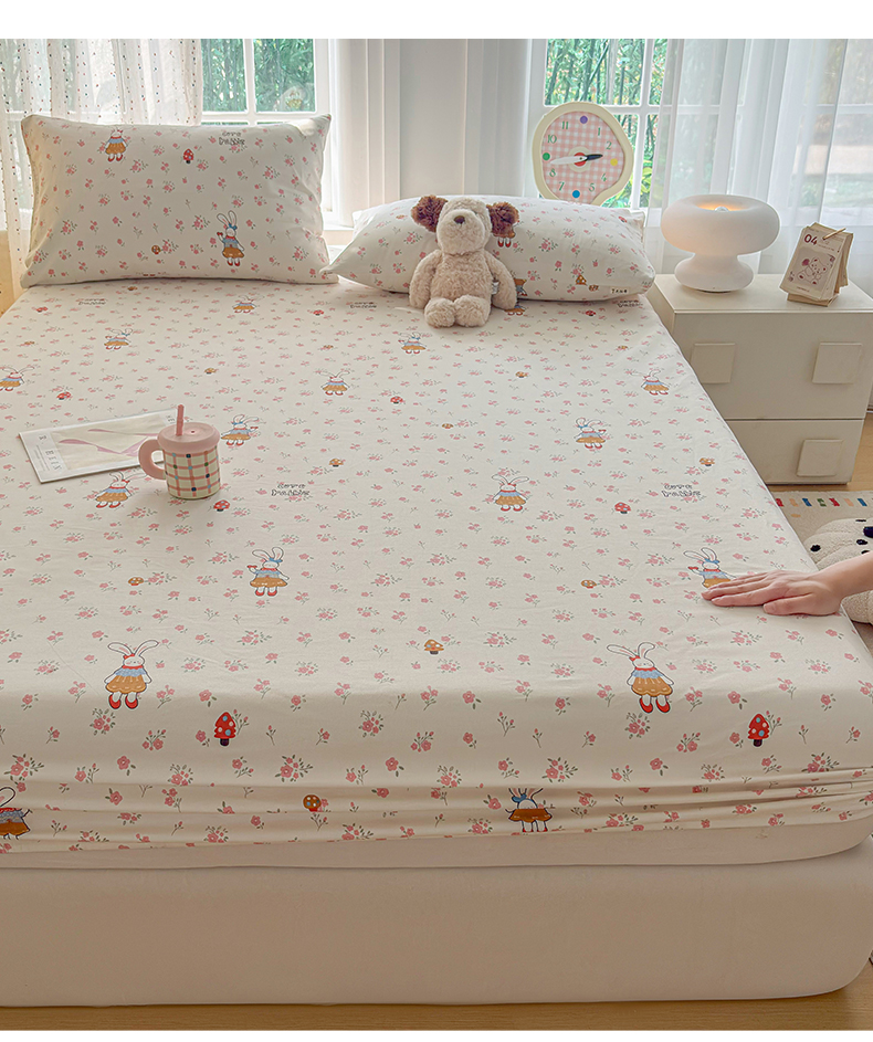 慕梵家居 2026春夏新款全棉纯棉老粗布单床笠 床笠单件 蘑菇兔