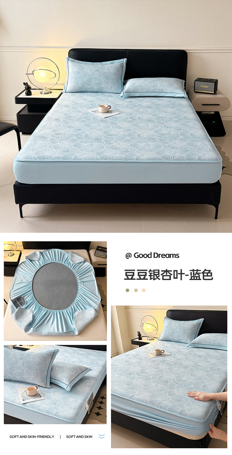 商品名称:牵梦萦家纺 2026新款立体浮雕压花工艺凉感豆豆凉席-床笠款 豆豆银杏叶-蓝色