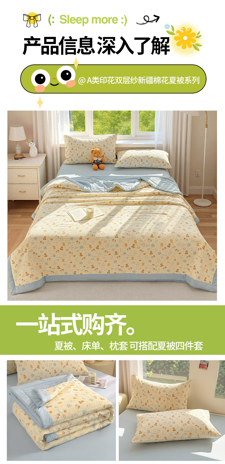 150x200cm夏被+床单+枕套2只 | ¥55.00 |
