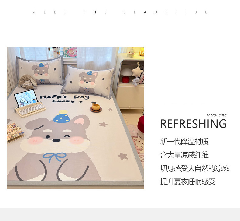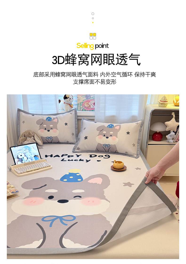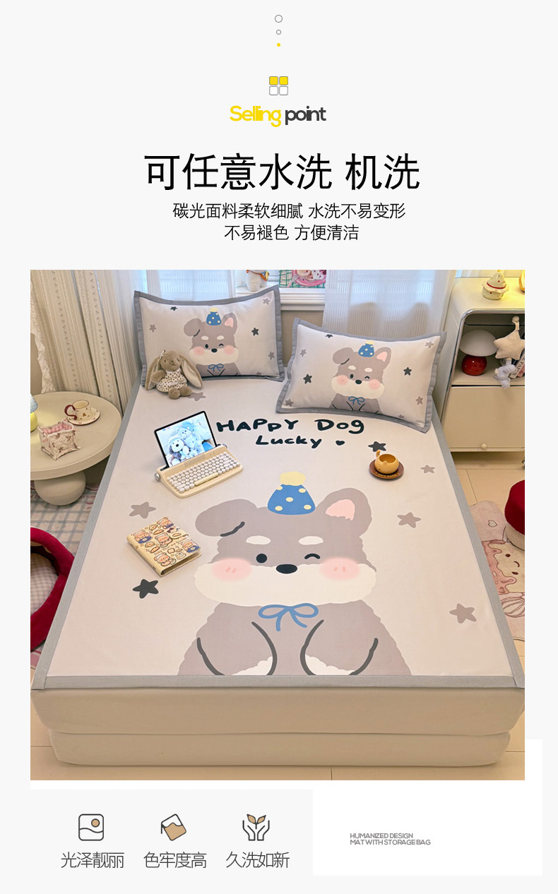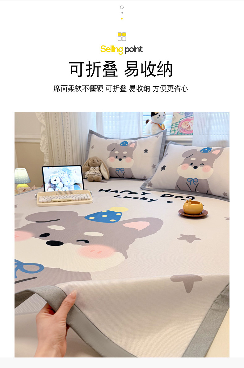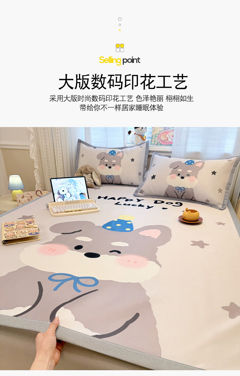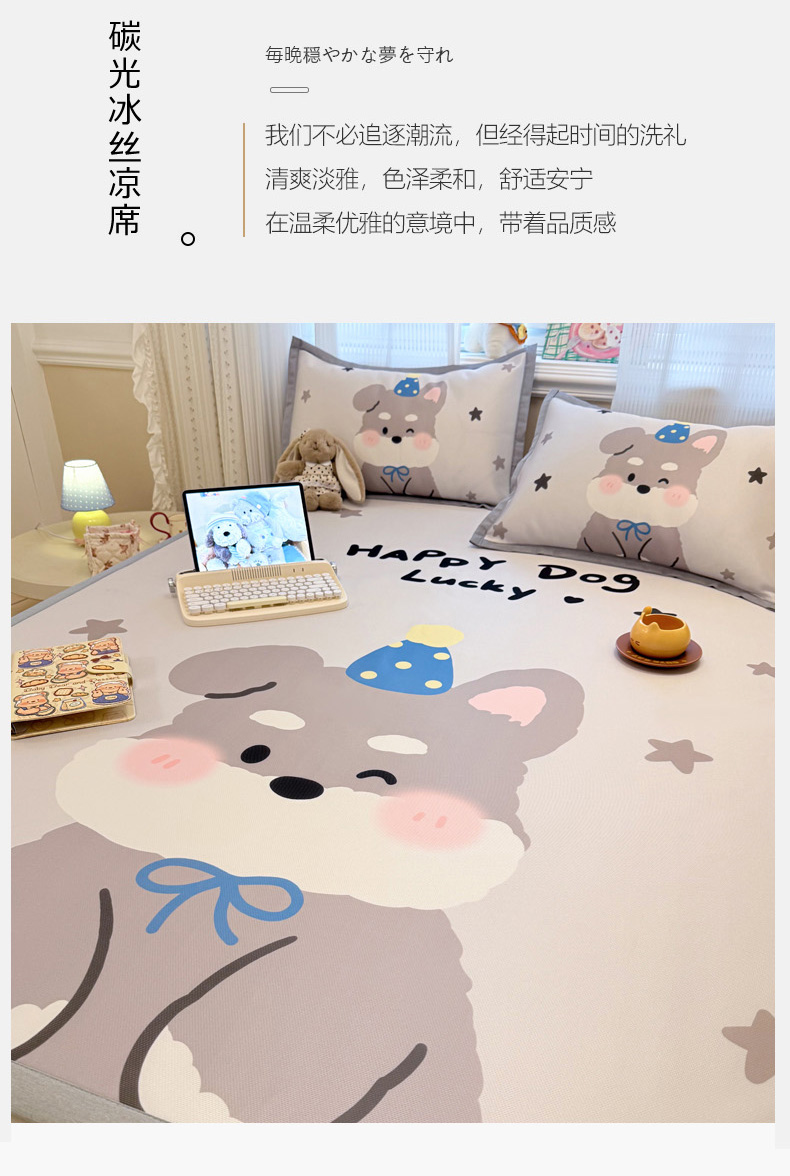 (总)柒月家居 2026新款大版印花碳光冰丝席床席款凉席,围兜狗狗,斑点熊,茶茶蓝猫,蛋糕派对,蛋糕汪汪,动物世界,房子小狗,卷卷白狗,满天星辰,猫猫小窝,猫咪伙伴,萌宝,萌系女孩,蘑菇小兔,晚安熊,汪汪乐园,星星之愿,熊猫宝贝,雪纳瑞狗