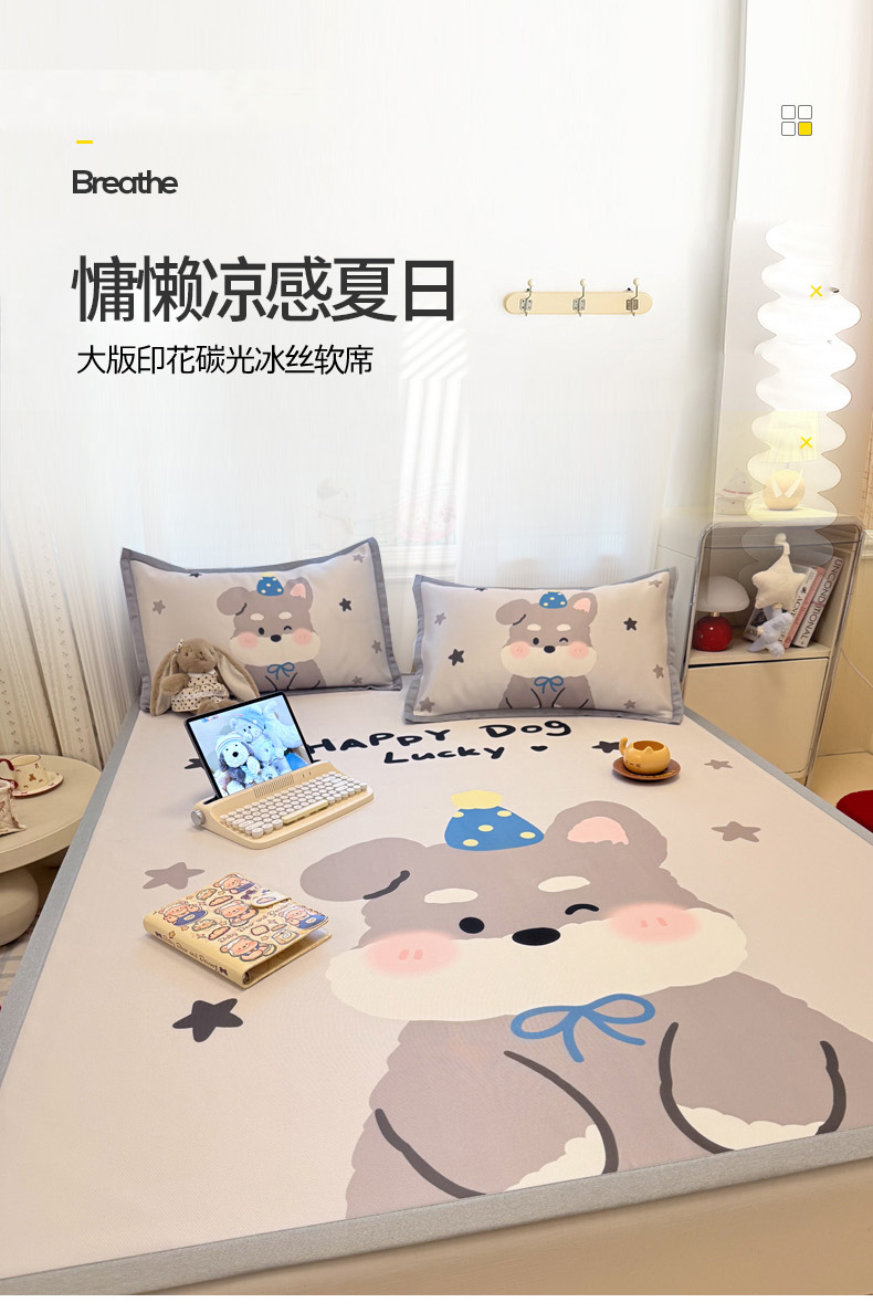 柒月家居 2026新款大版印花碳光冰丝席床席款凉席 雪纳瑞狗