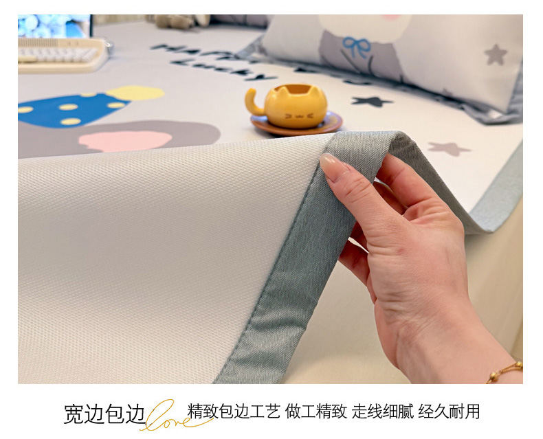 (总)柒月家居 2026新款凉感丝小清新乳胶凉席夏被四件套系列,蓝格甜猫,爱心小熊,豹纹精灵,粉格凯蒂,格调,花季,蓝块汪仔,奶盖猫咪,碎花派对,桃桃奶猫,星梦小熊,星星月亮,字母小熊