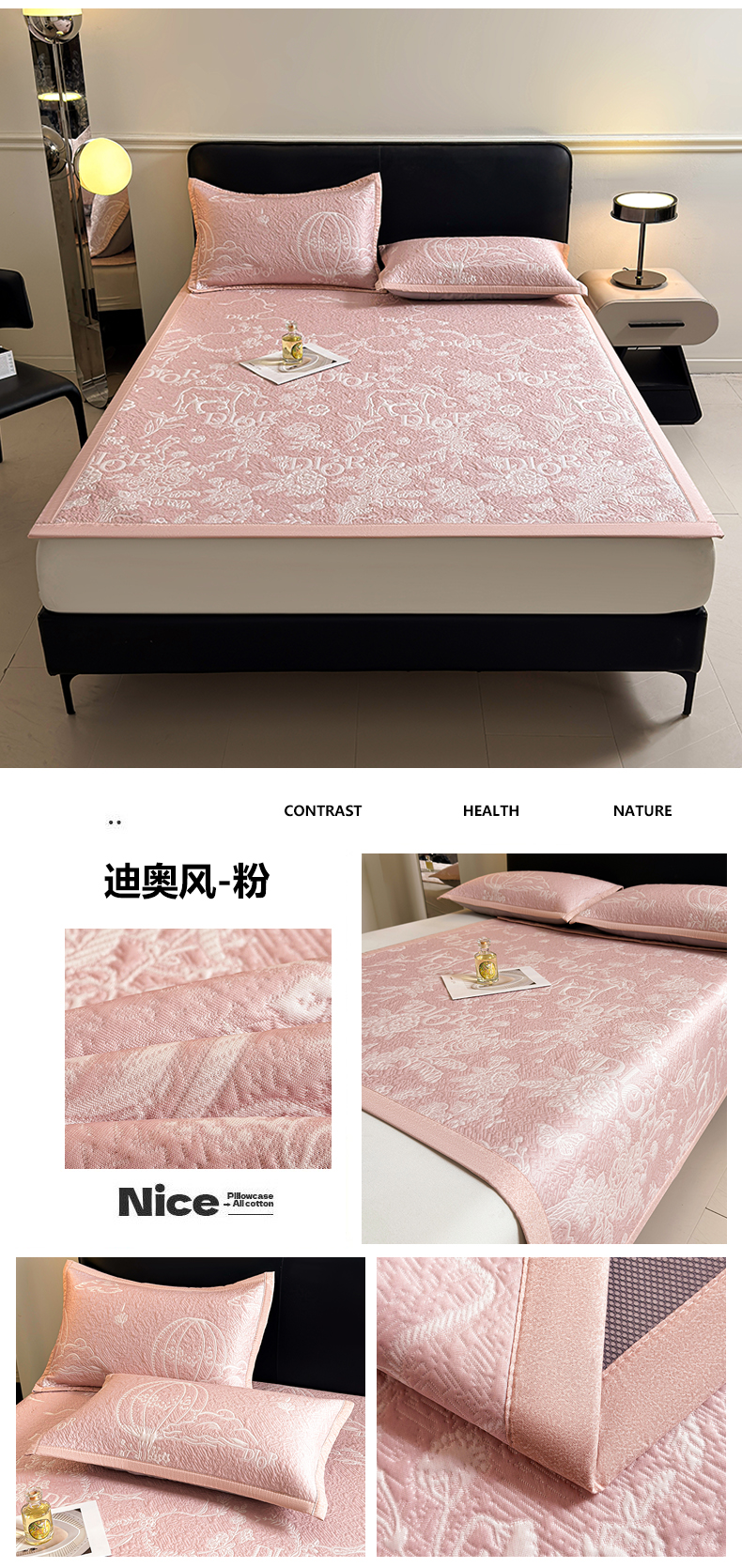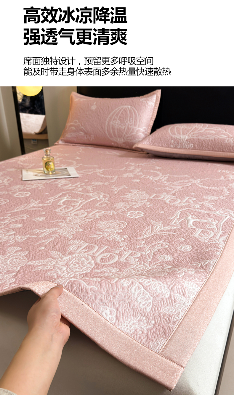 当前位置: 91家纺网 > 商品网购 > 床上用品 > 凉席 > 凉席套件 > 慕木家纺 2026新品高端复合三明治PE乙纶双面提花610克冰豆豆凉席迪奥风系列(提供买家秀) 床席款迪奥风-粉