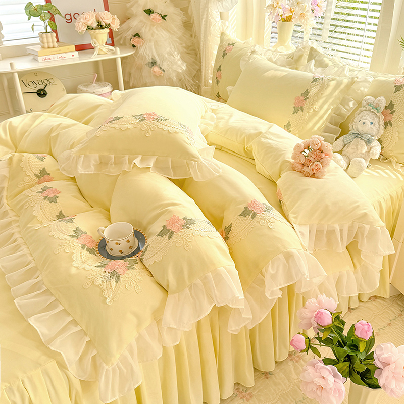当前位置: 91家纺网 > 商品网购 > 床品套件 > 四件套 > 其它四件套 > 后庭寝室 2026新款水溶花边床裙四件套-爱恋系列 爱恋-粉