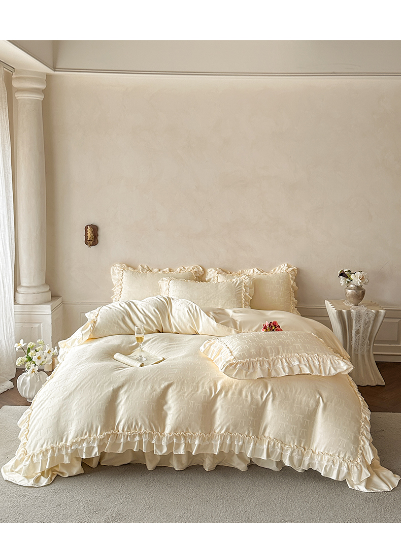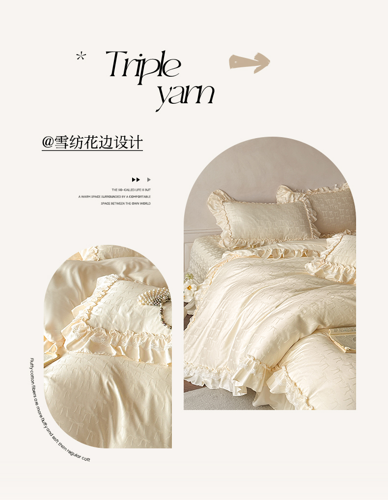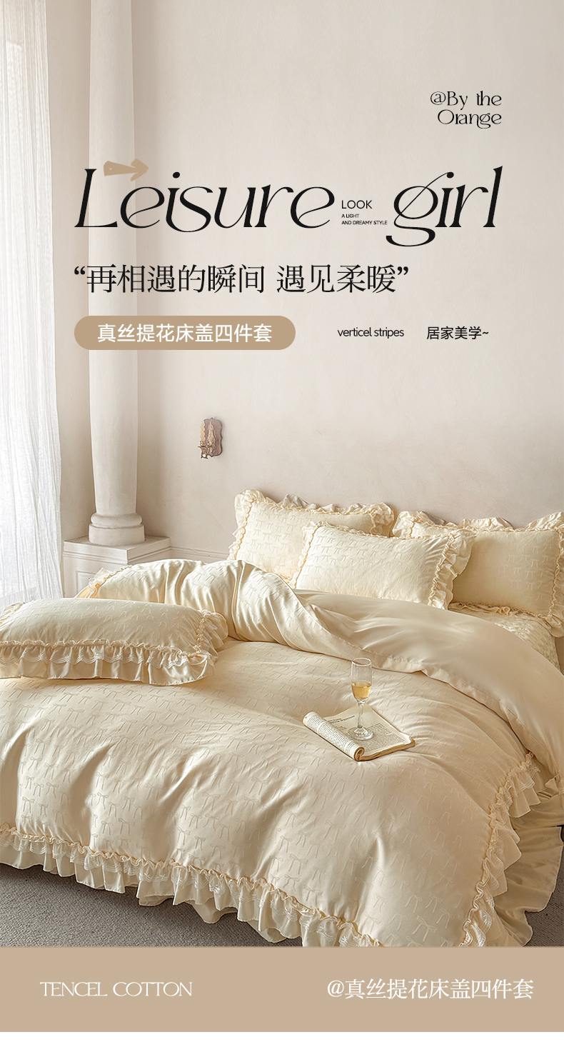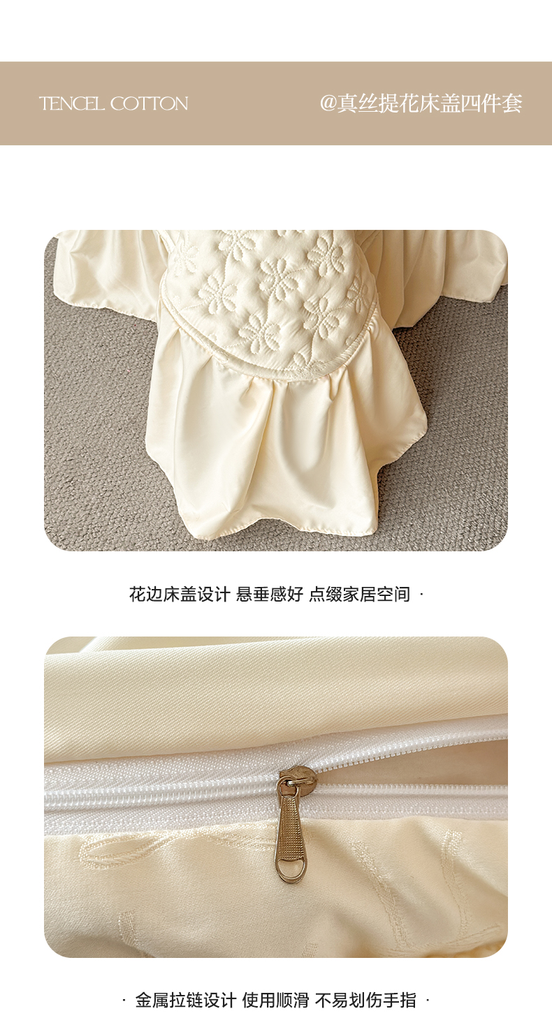 迪梦姿家纺 2026新款春意真丝提花床盖四件套 奶白