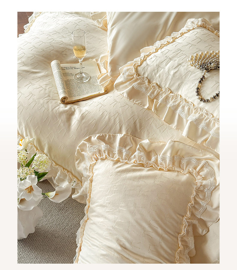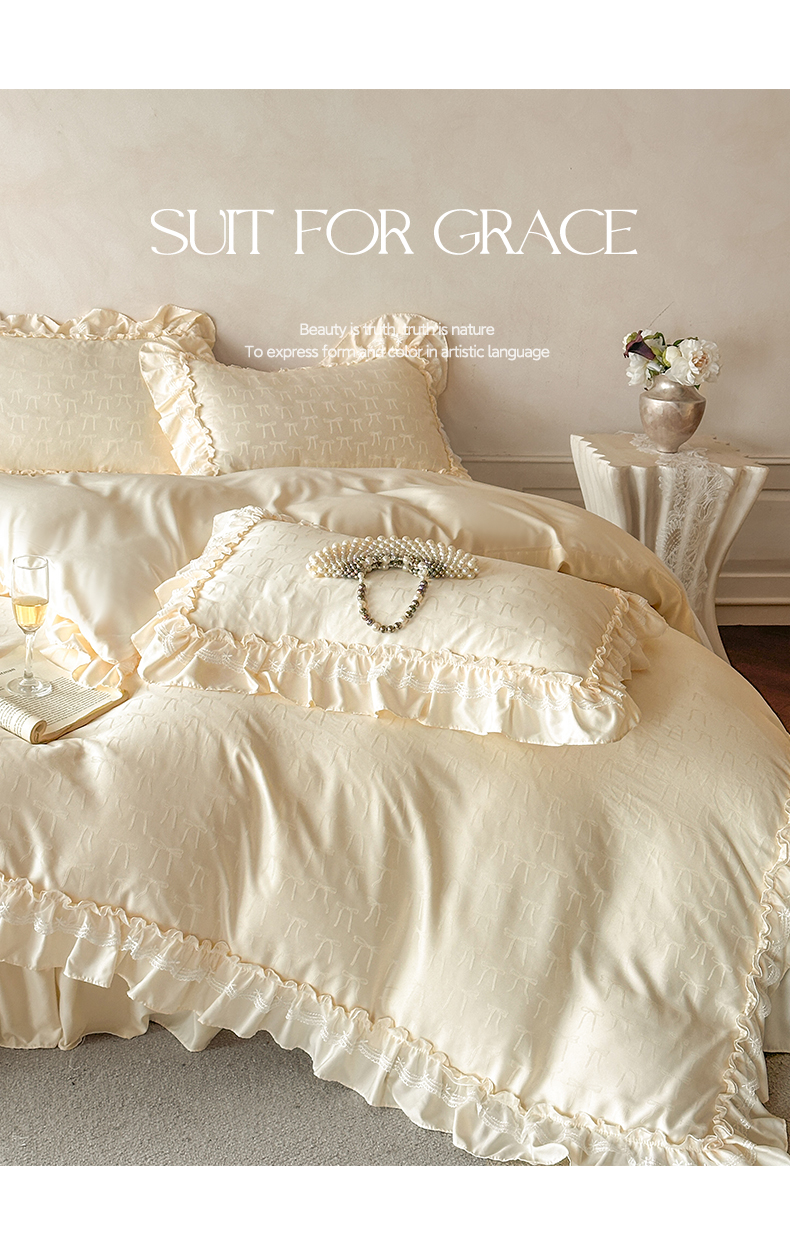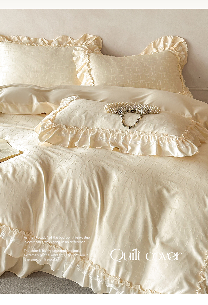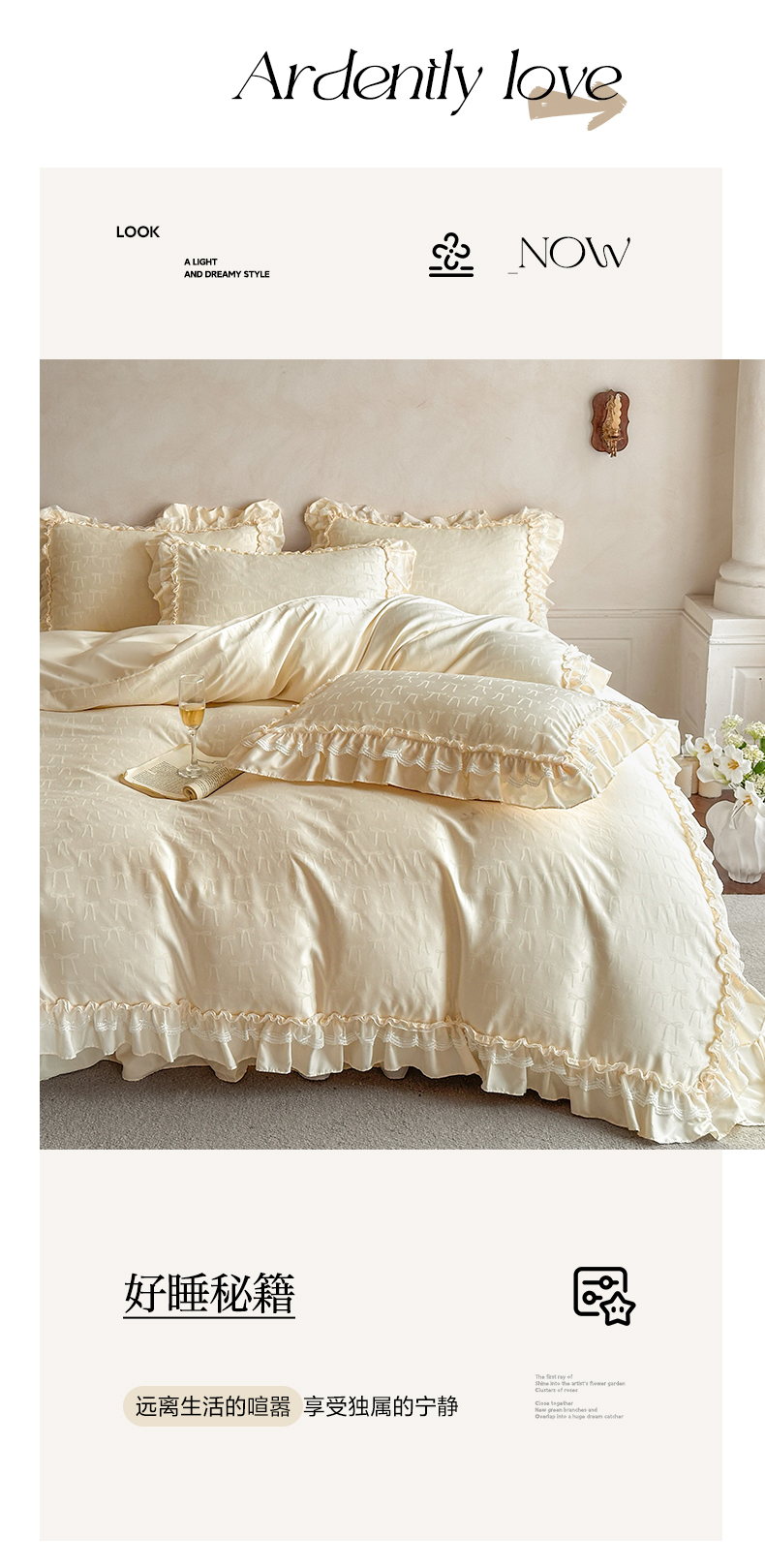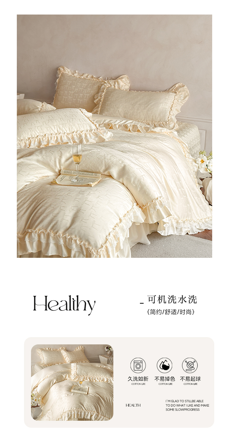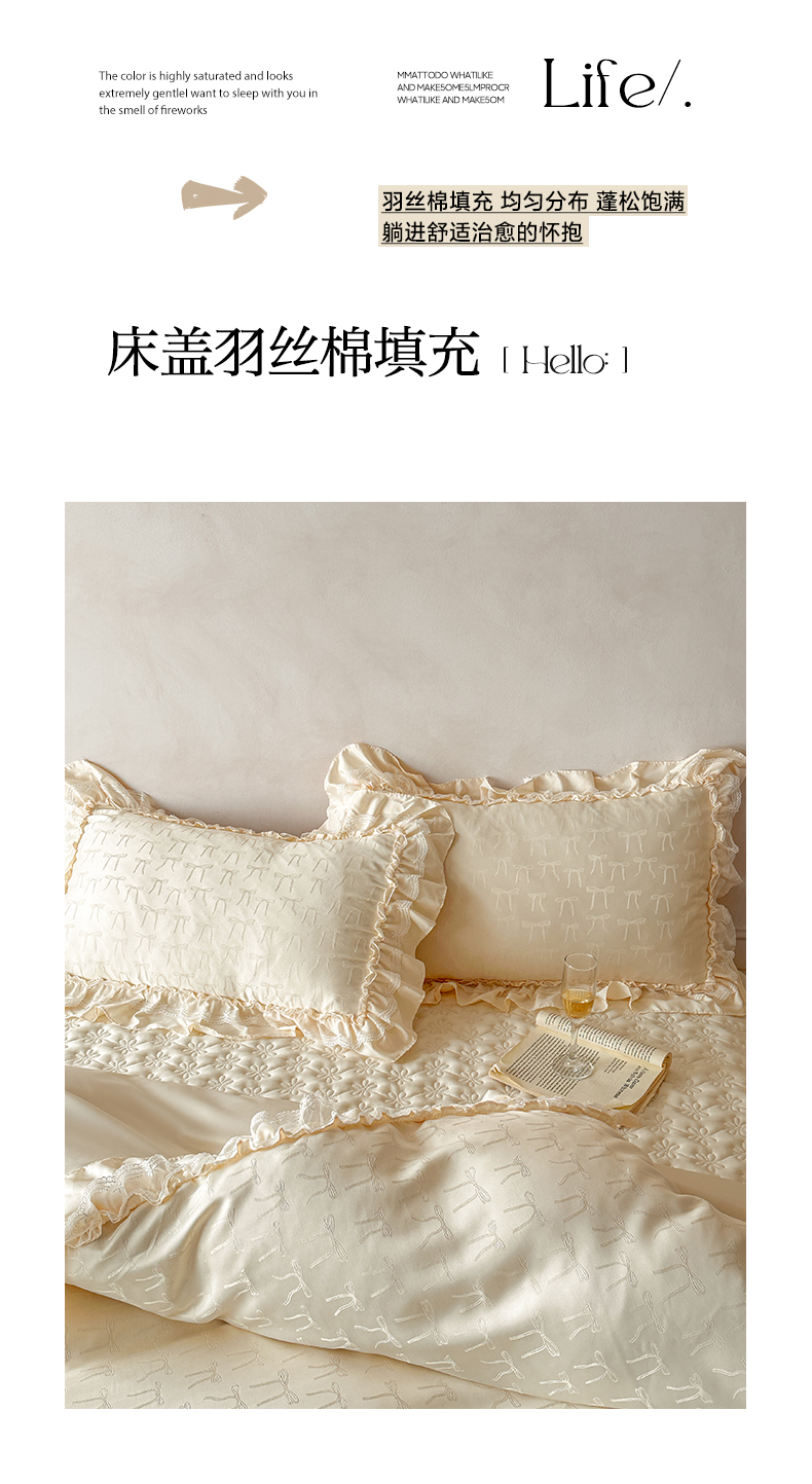 (总)迪梦姿家纺 2026新款春意真丝提花蕾丝款夏被四件套,豆沙,粉玉,抹茶绿,奶白,天空兰,香槟