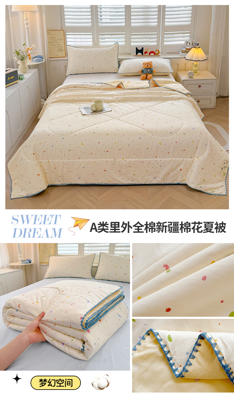(总)犇牛仓储供应链 2026春夏新款全棉印花新疆棉花夏被夏凉被空调被,梦宠星光,多彩乐园,快乐海滩,波点蝴蝶结,梦幻空间