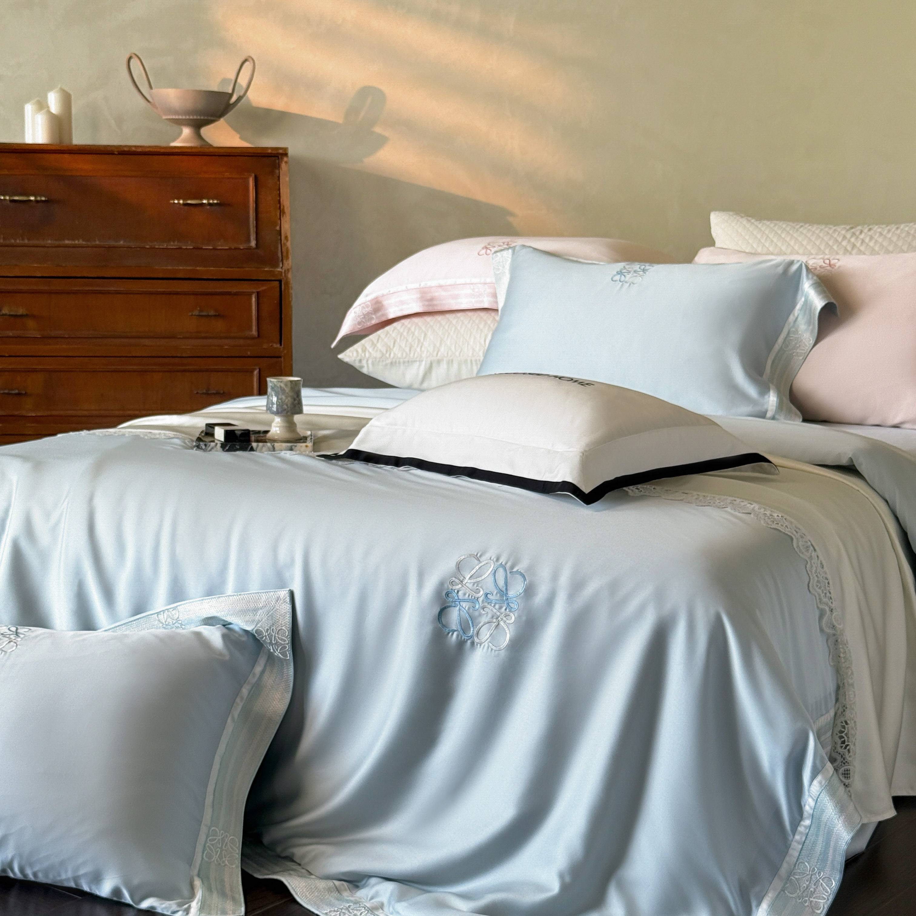 (总)初拾 2025新款全棉双股刺绣四件套-赫拉公主(棉),棉 赫拉公主-海边蓝,棉 赫拉公主-奶油粉