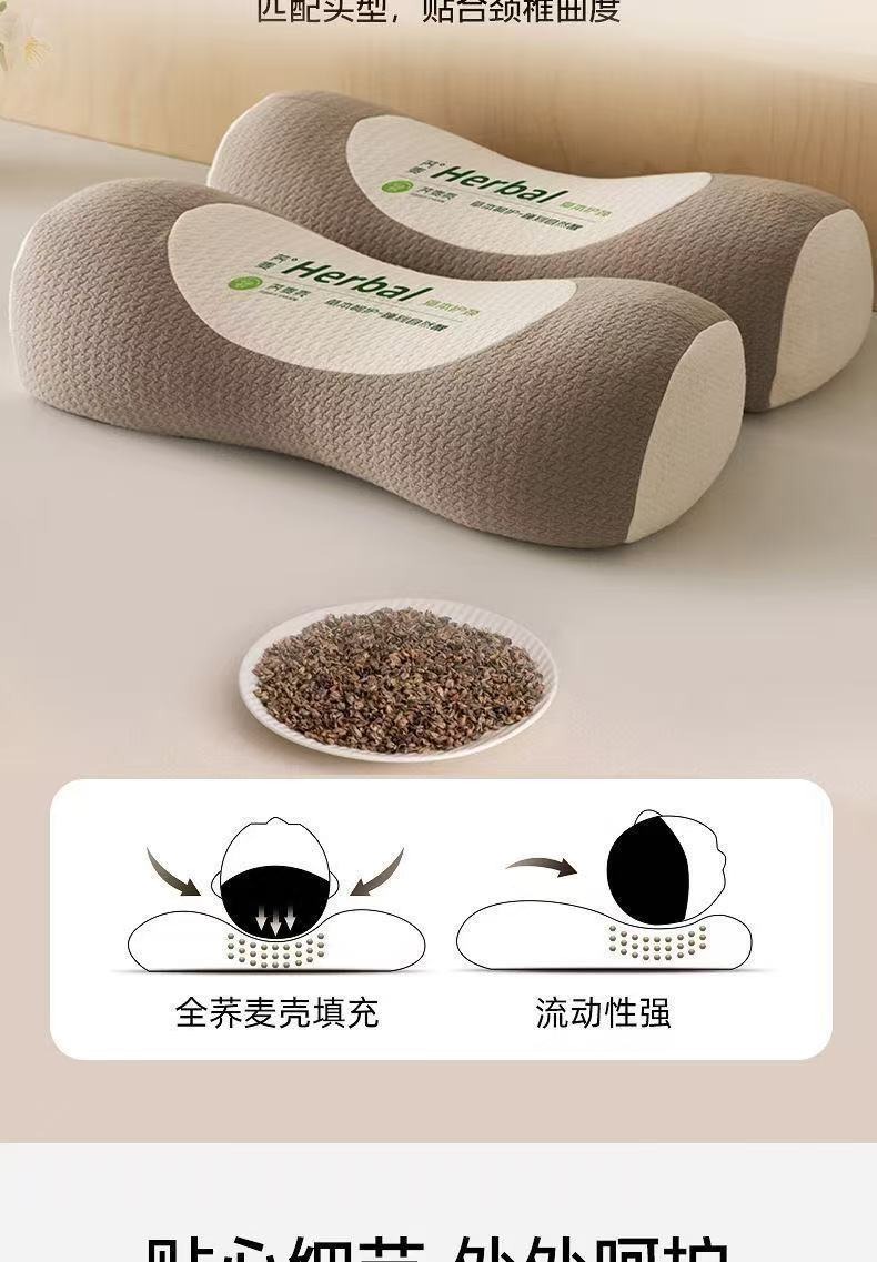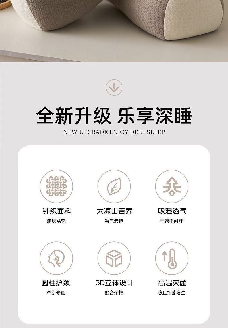 (总)怡薇格枕芯 2026新款针织圆柱立体荞麦护颈枕枕头枕芯,咖色,米色