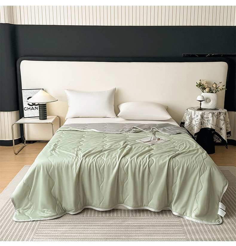 (总)好欣怡家纺 2026新款双层绗缝凉感丝夏被,宾利蓝,冰川白,豆沙粉,罗兰紫,浅茶绿,雾蓝,云兰