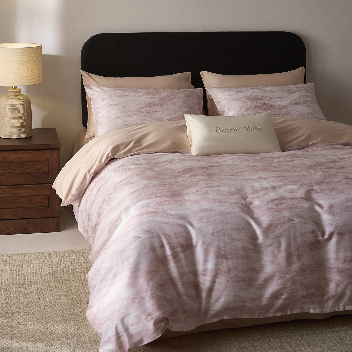 当前位置: 91家纺网 > 商品网购 > 床品套件 > 四件套 > 全棉普通四件套 > ONE TWO ONE 121 【会员-20】 【控价商品】【提供买家秀】 2026新款专版数码印花100s长绒棉全棉床上用品四件套 水墨江隐-粉