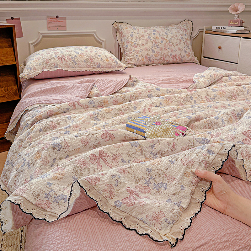 (总)一比一家纺 2026新款彩色花边木棉皱皱纱夏被四件套,阿吉豆,初心粉,初心蓝,扶摇,赫本,花间女孩,花漫漫,阑珊,罗卡,奶芙喵,甜心格格,午后花园,小马驹,邂逅,野餐兔,樱花季,悠然,紫烟