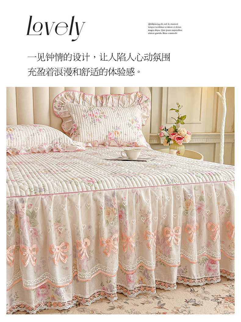 • 91家纺网 家纺一手货源 找家纺 (总)宜凡家纺 2026新款全棉印花公主风夹棉床裙三件套,海棠之恋,镜花映月,水苏栀清,玉容昭婉