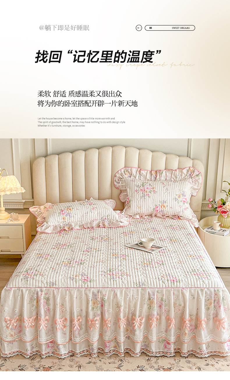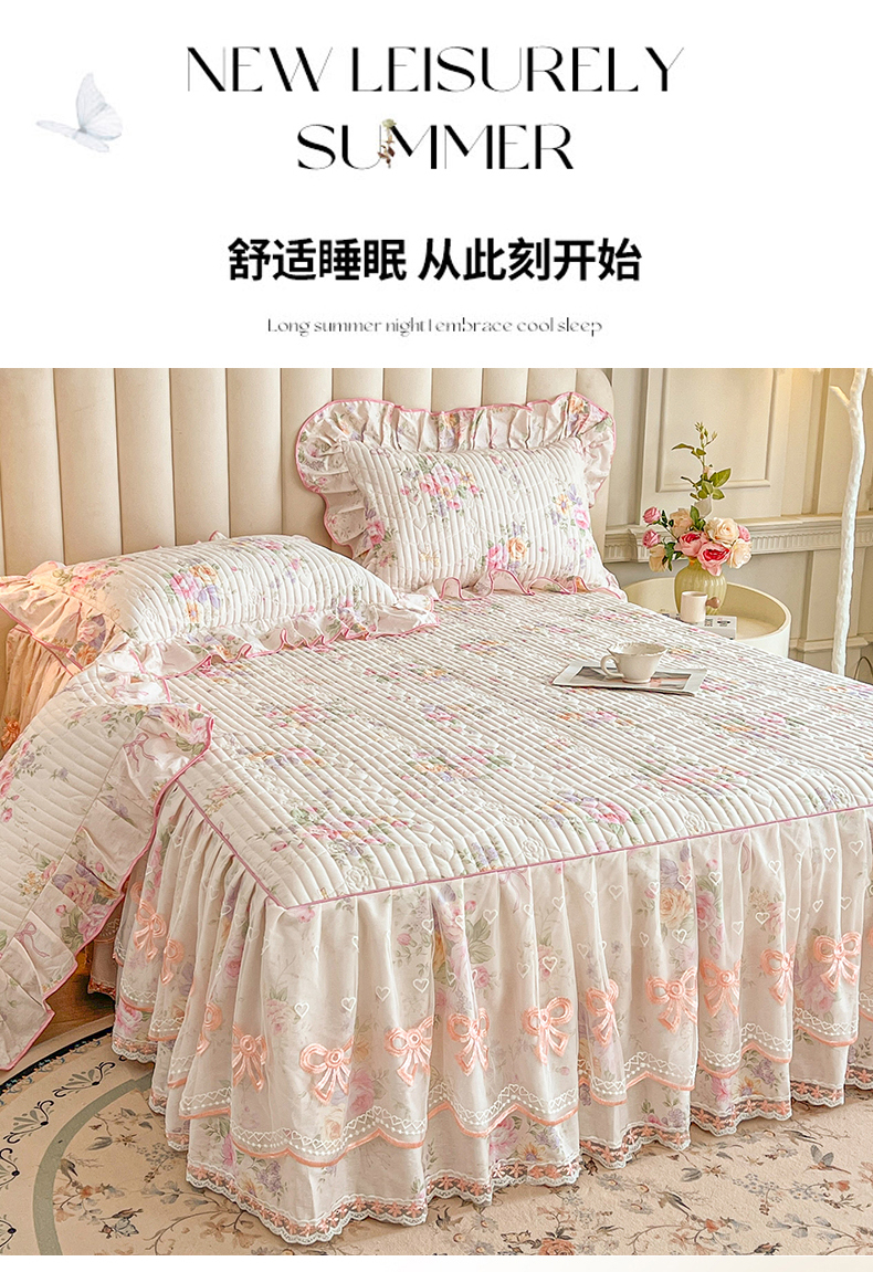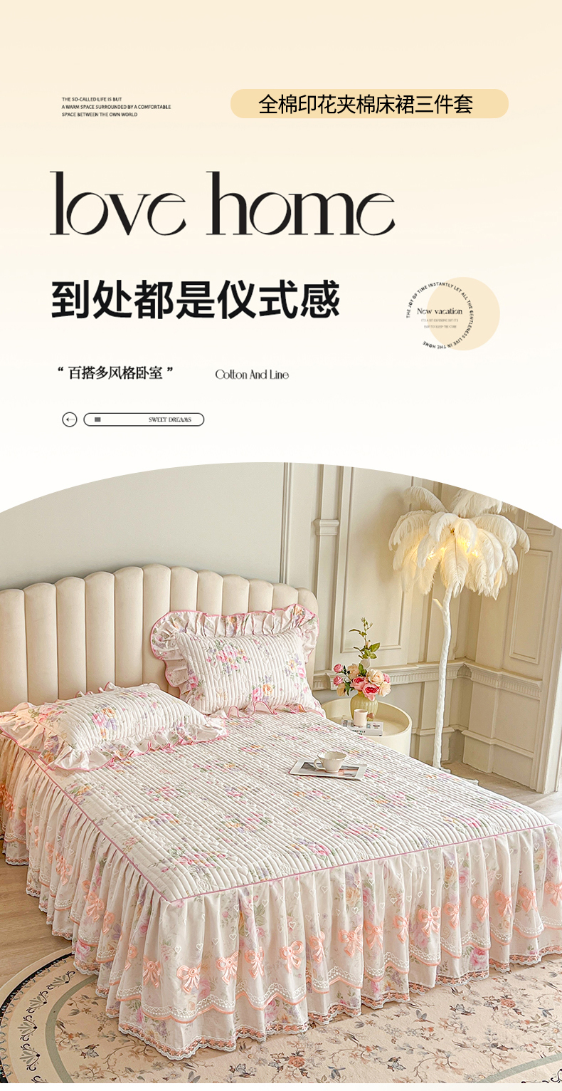 宜凡家纺 2026新款全棉印花公主风夹棉床裙三件套 玉容昭婉